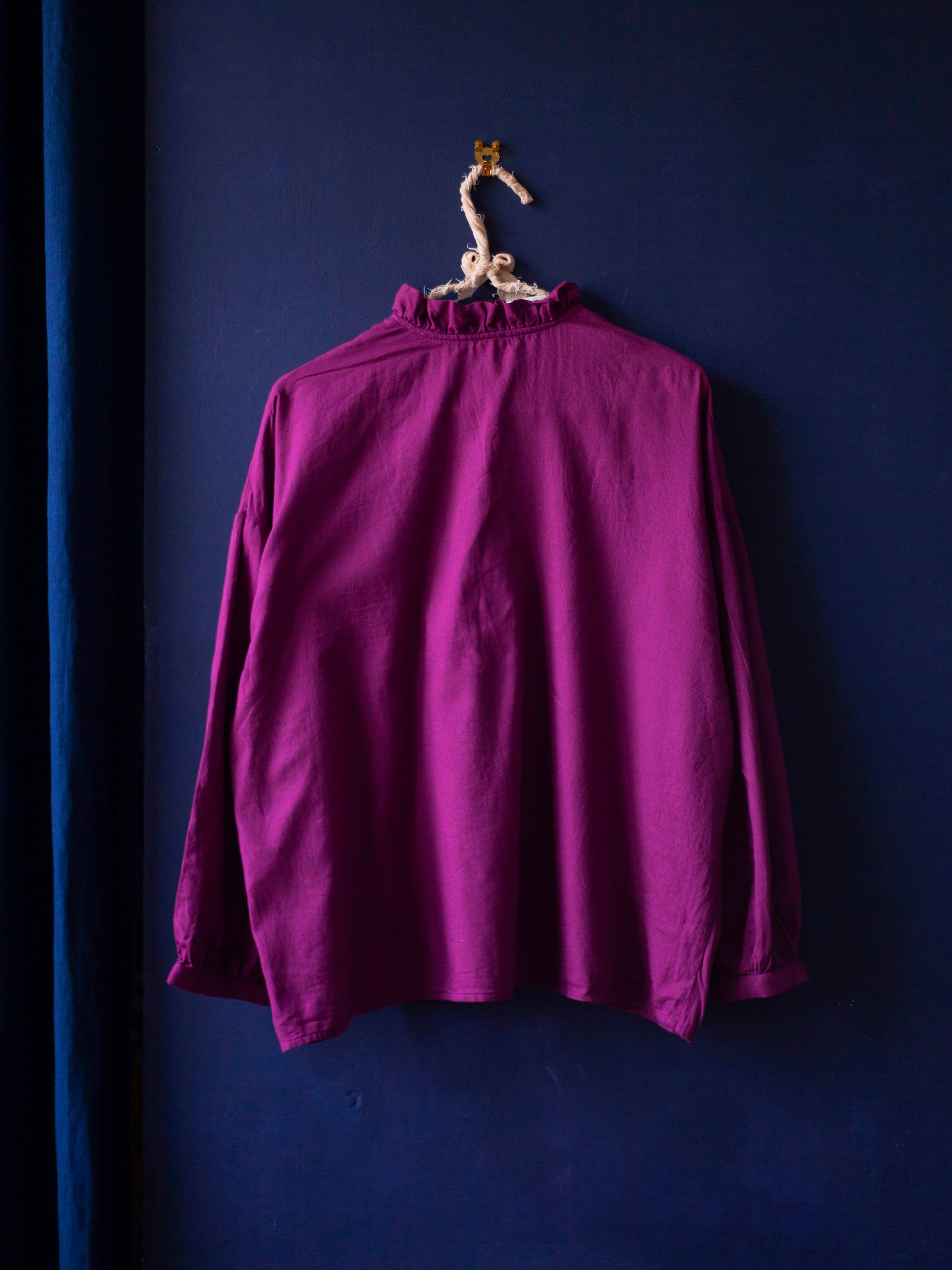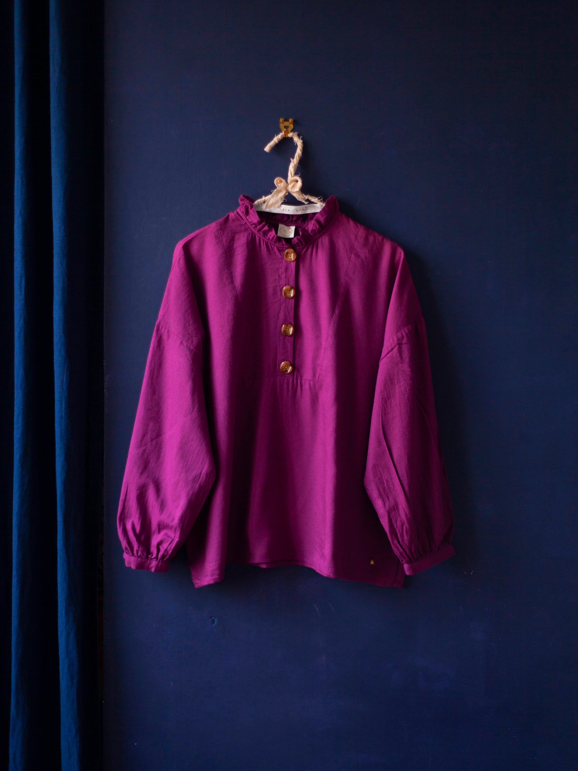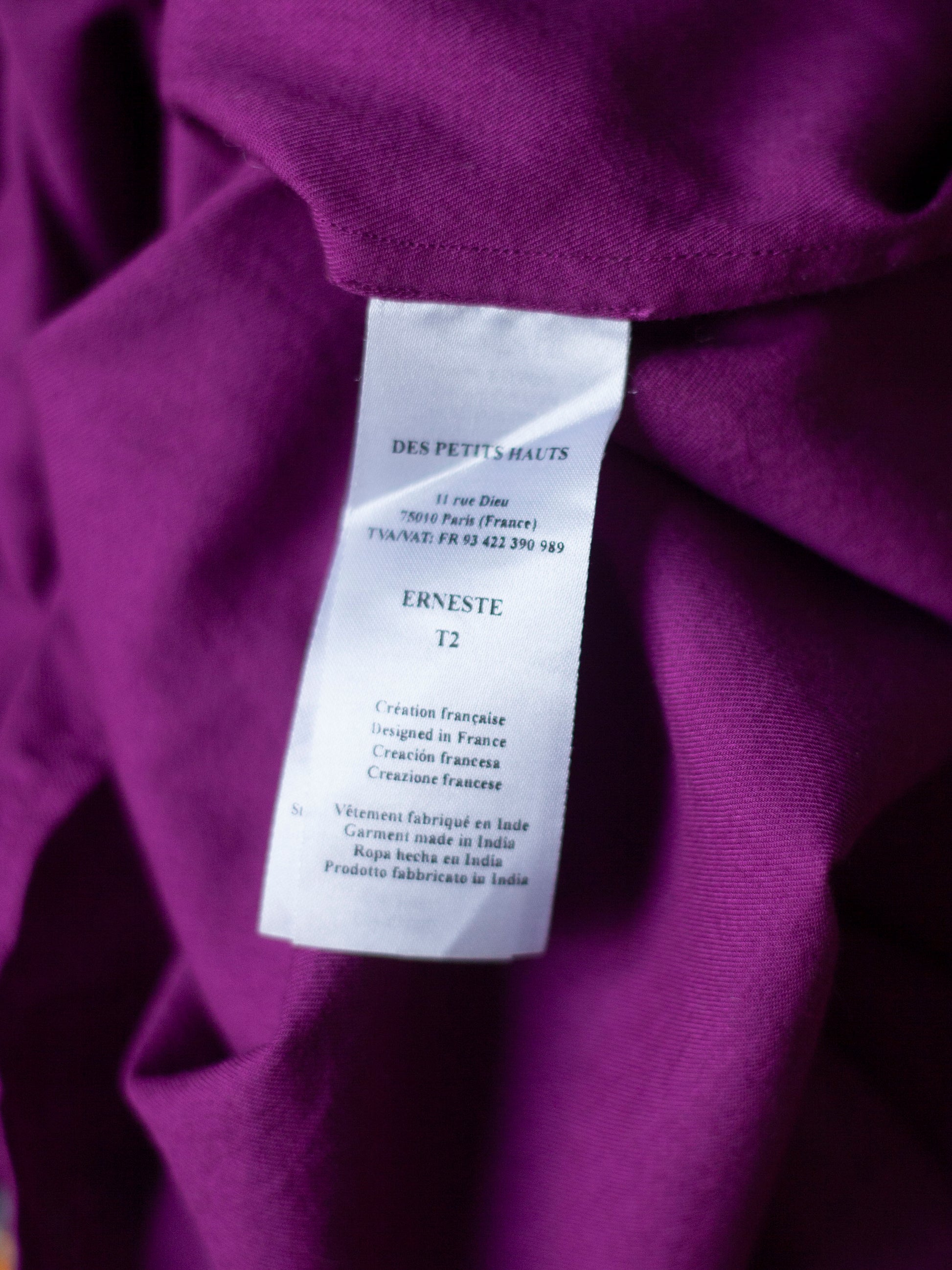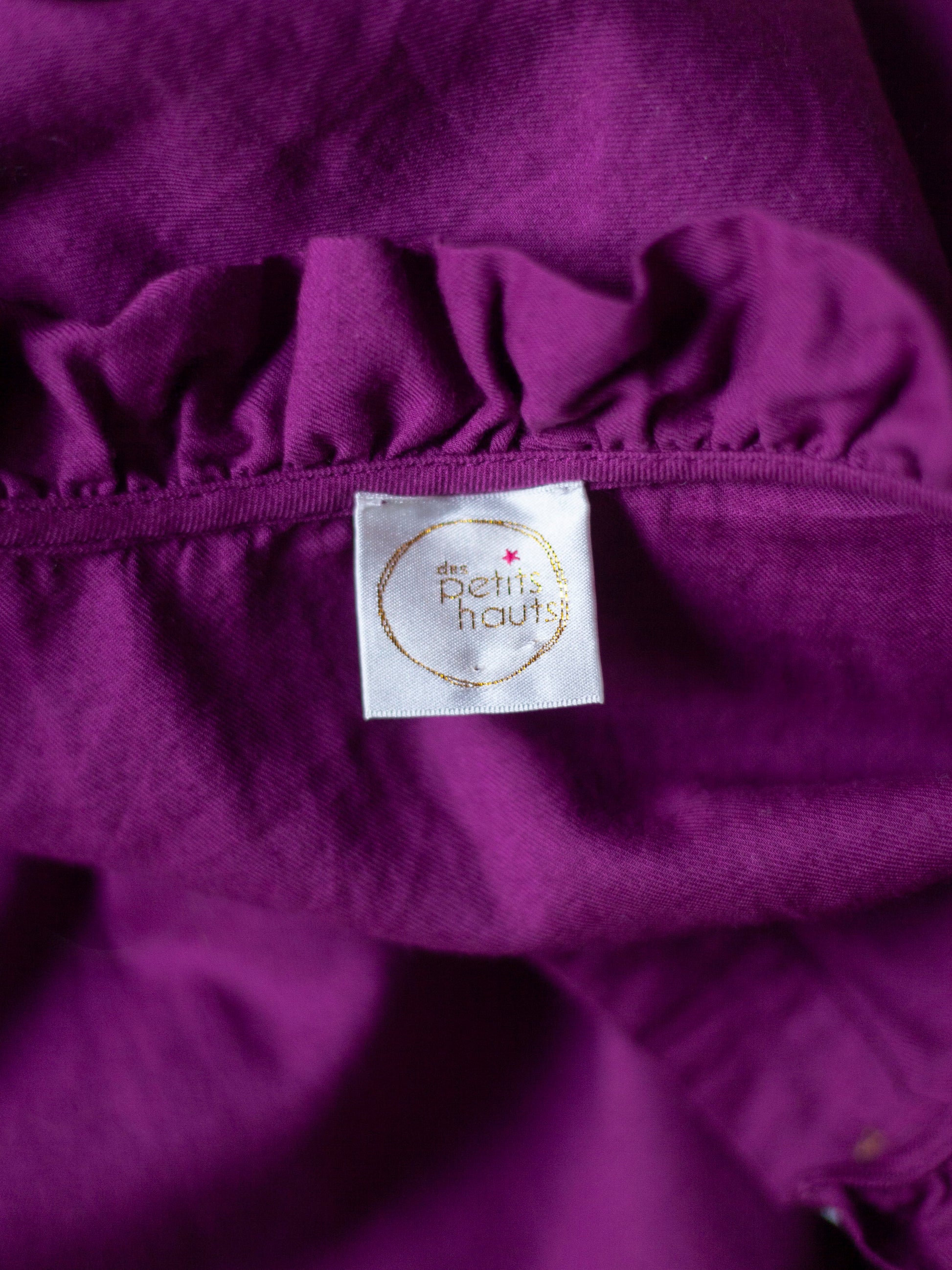 Jolie blouse fuschia Des petits hauts. Coupe fluide très agréable à porter. Le col à volants rappelle les cols victoriens d'époque et apporte une touche de romantisme. Parfait état. Fabriquée en Inde.