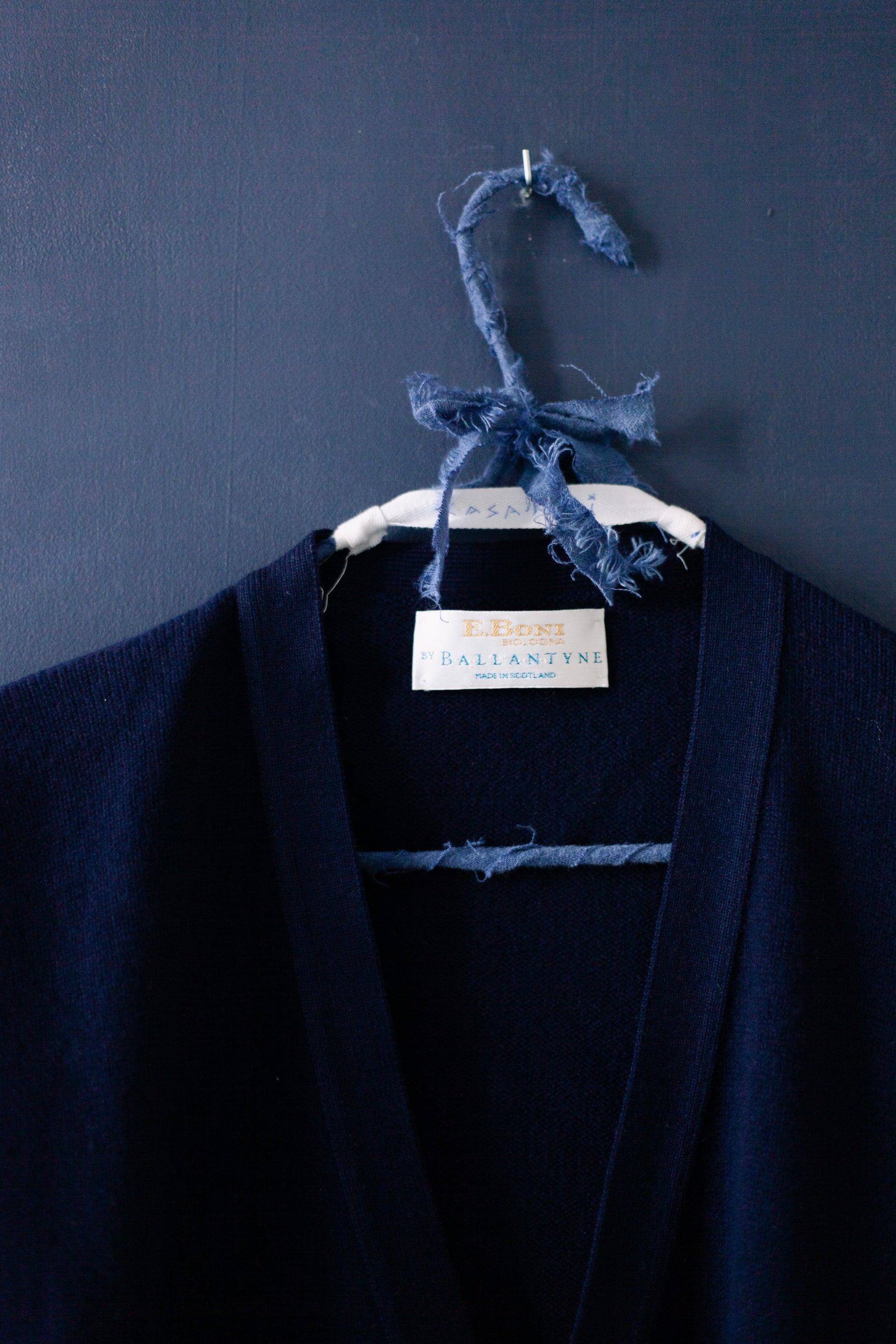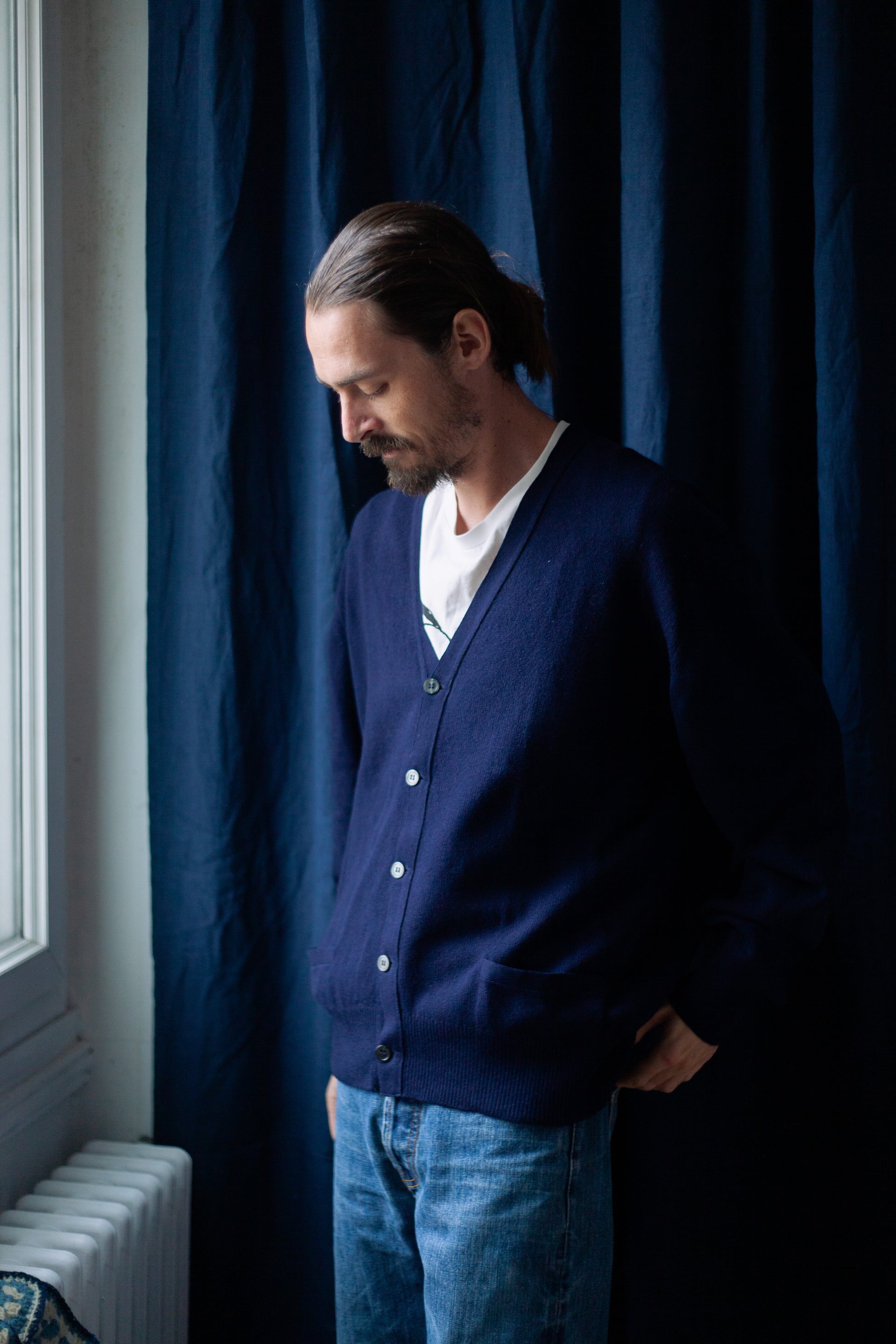 Cardigan en laine mérinos. Taille L homme. Très bon état. Bleu marine. Made in Scotland.