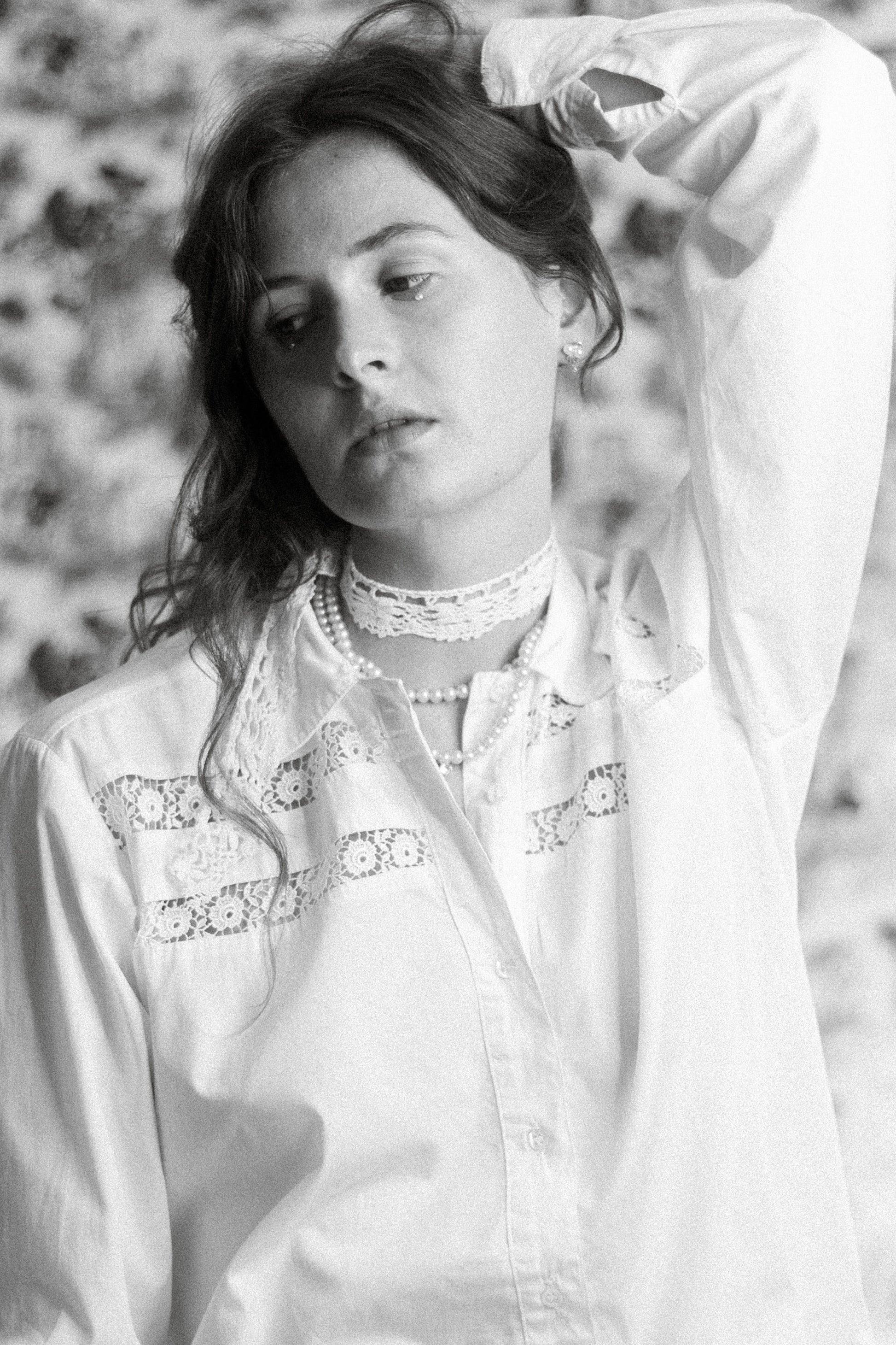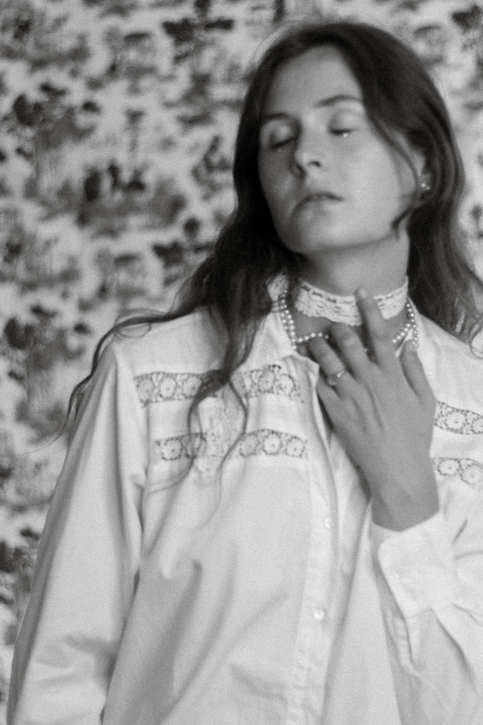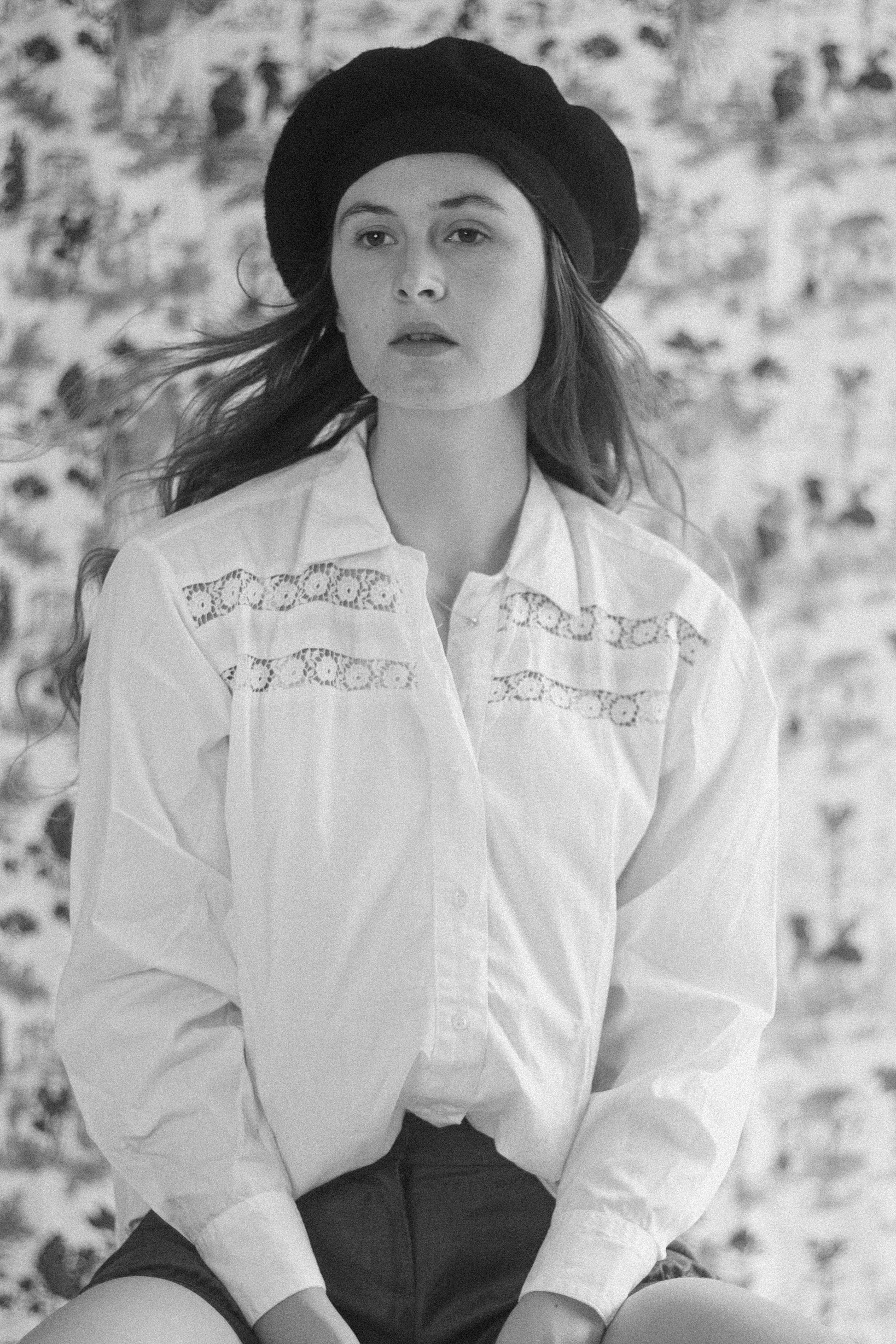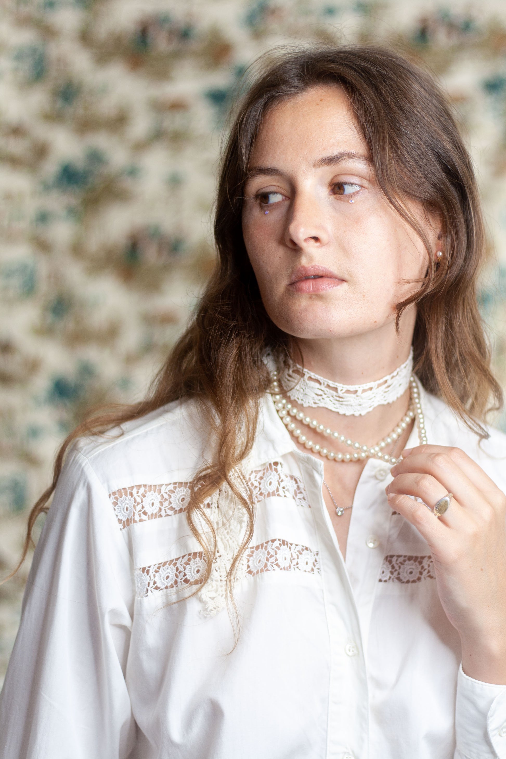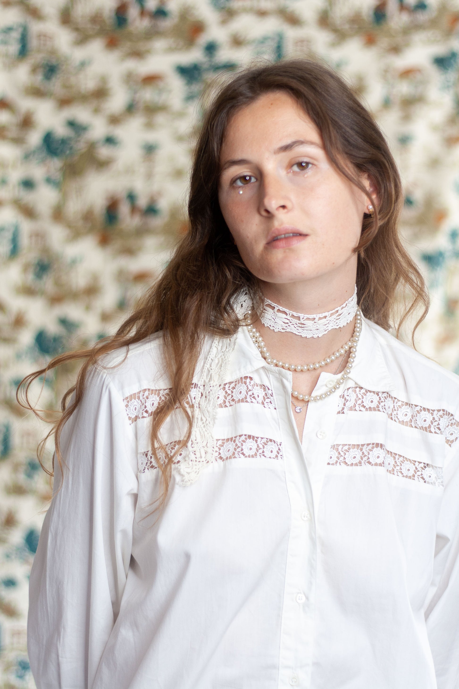 Chemise en coton et dentelle de la marque belge Scapa (anciennement Scapa of Scotland). Fabriquée en Belgique. Taille L.
