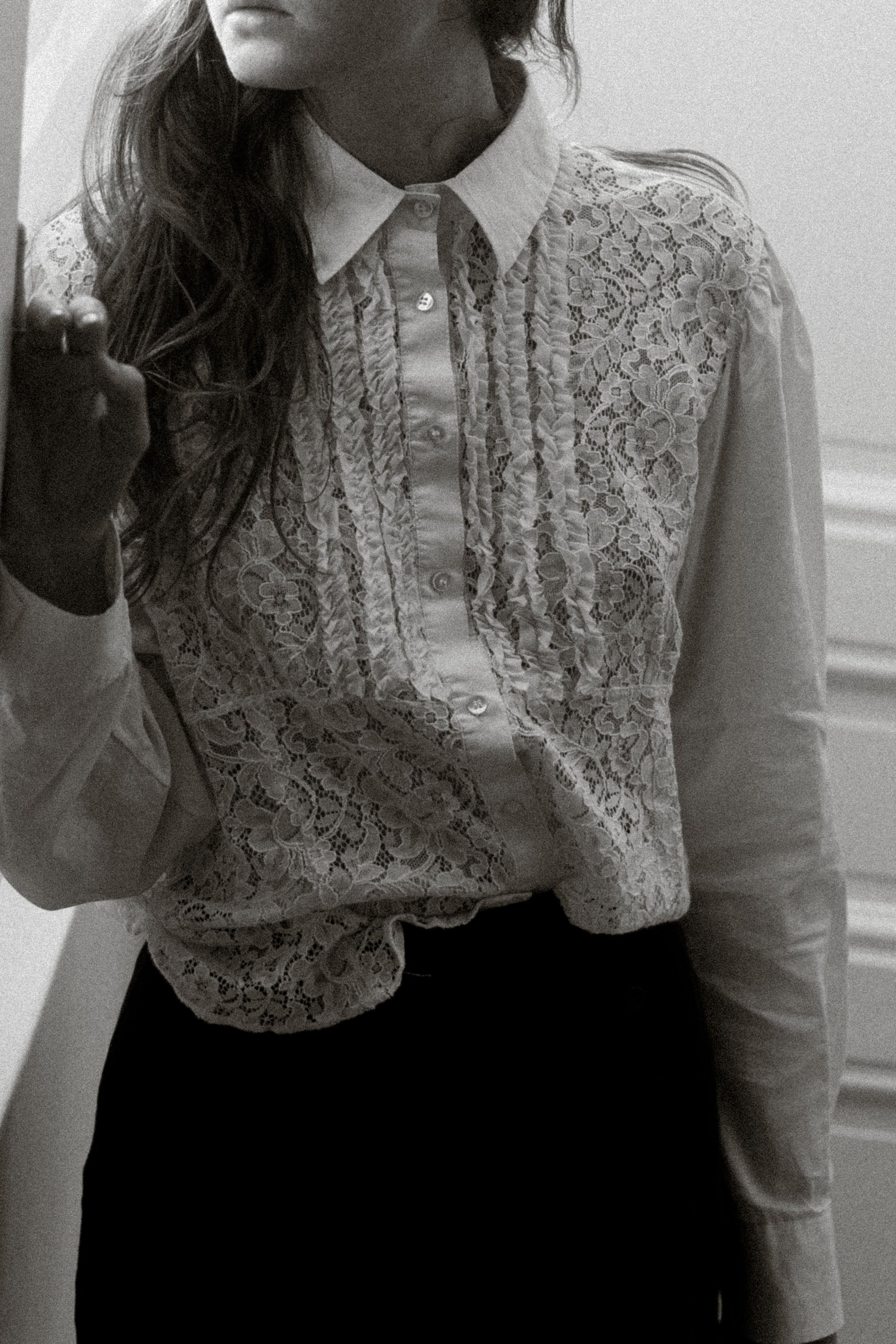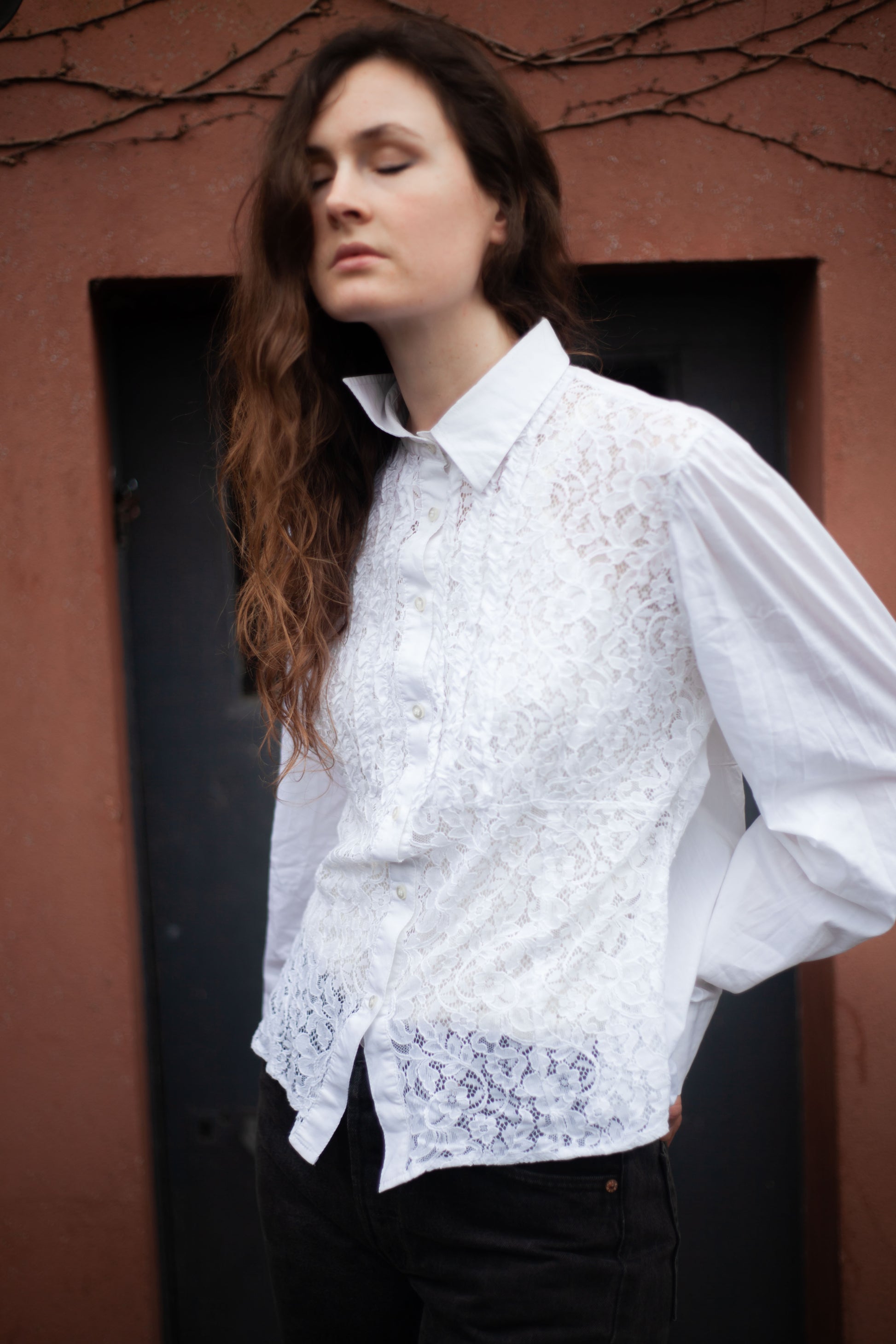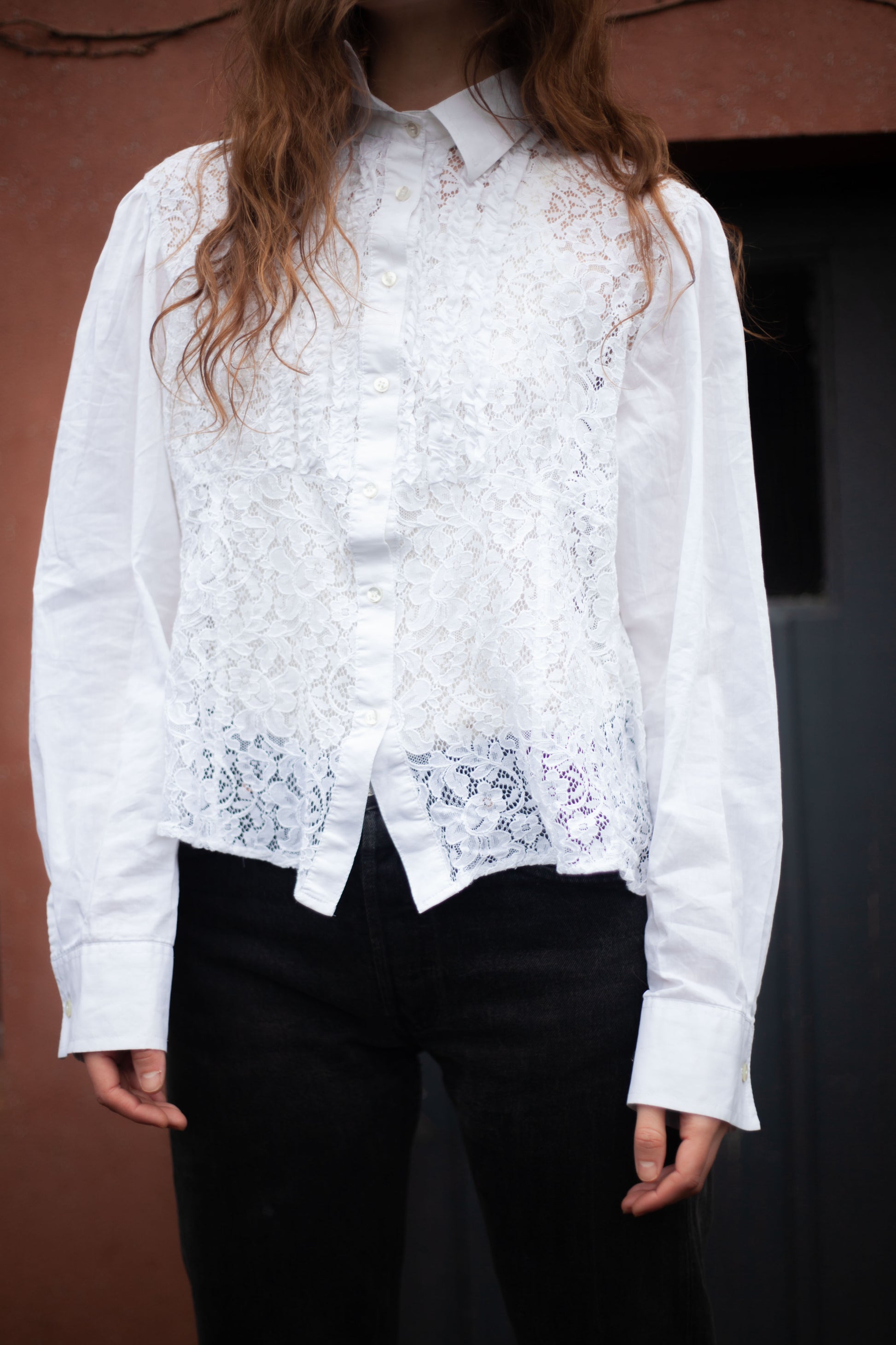 Chemisier en dentelle vintage. Made in Italy. Manches légèrement bouffantes. Taille L.