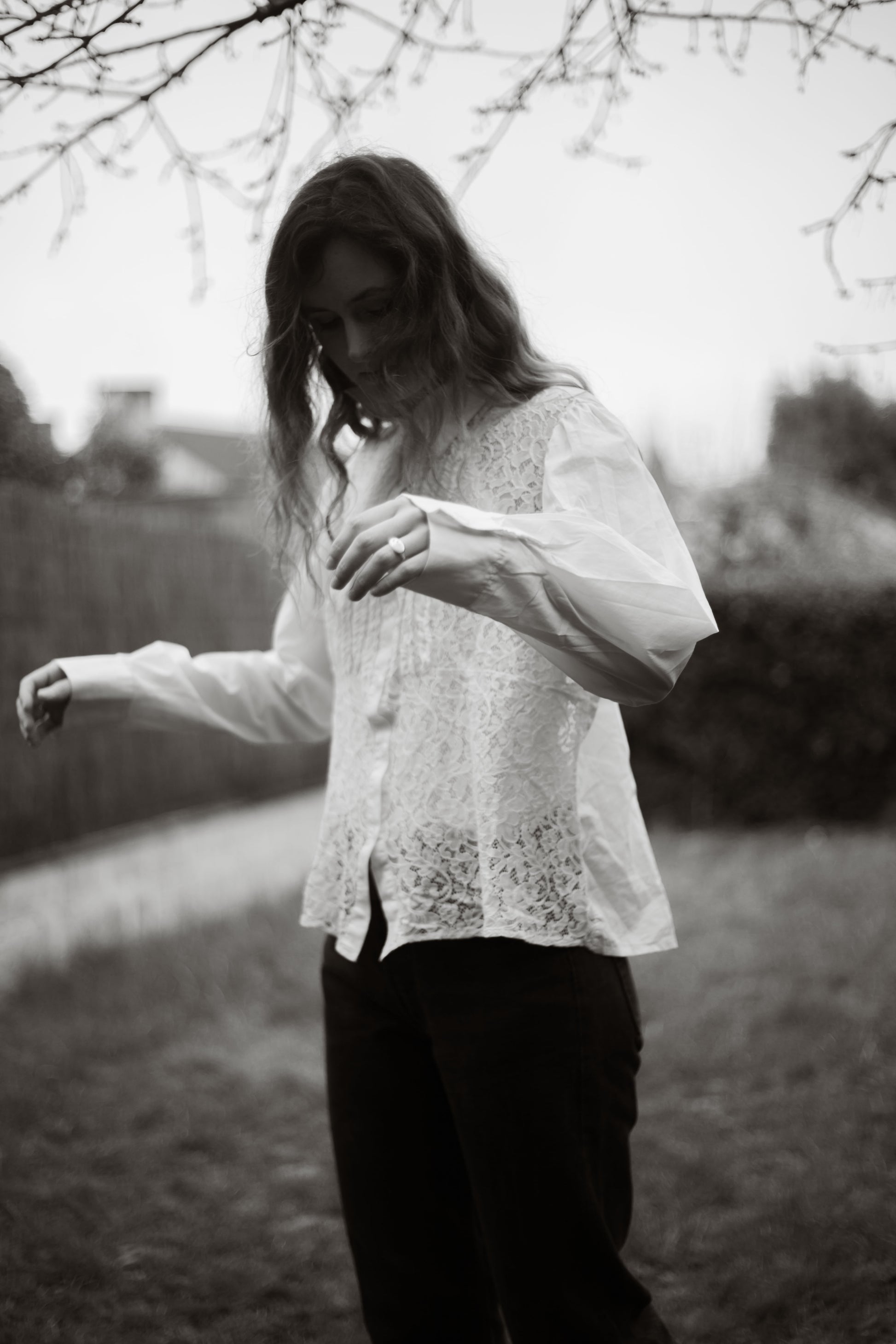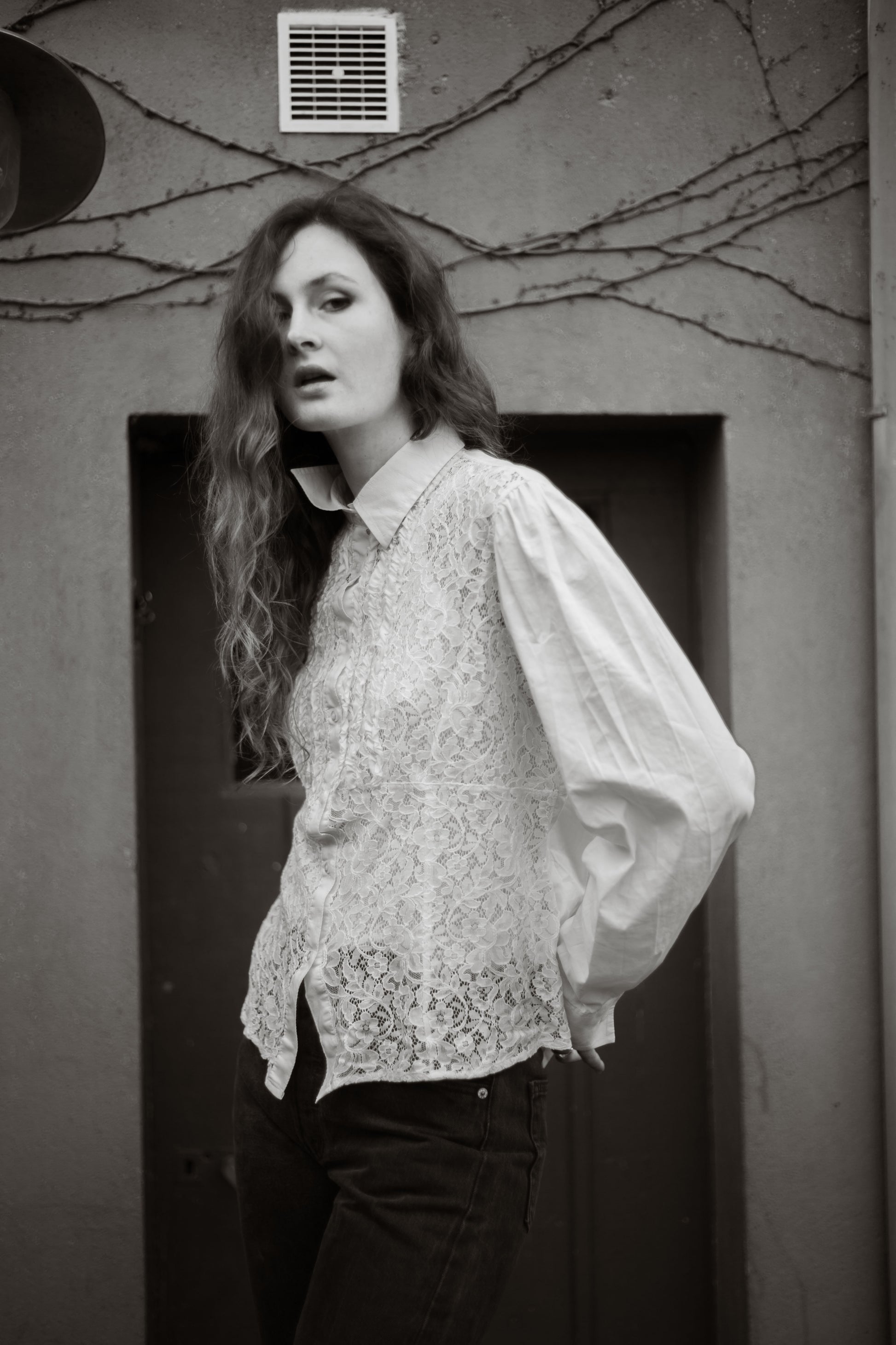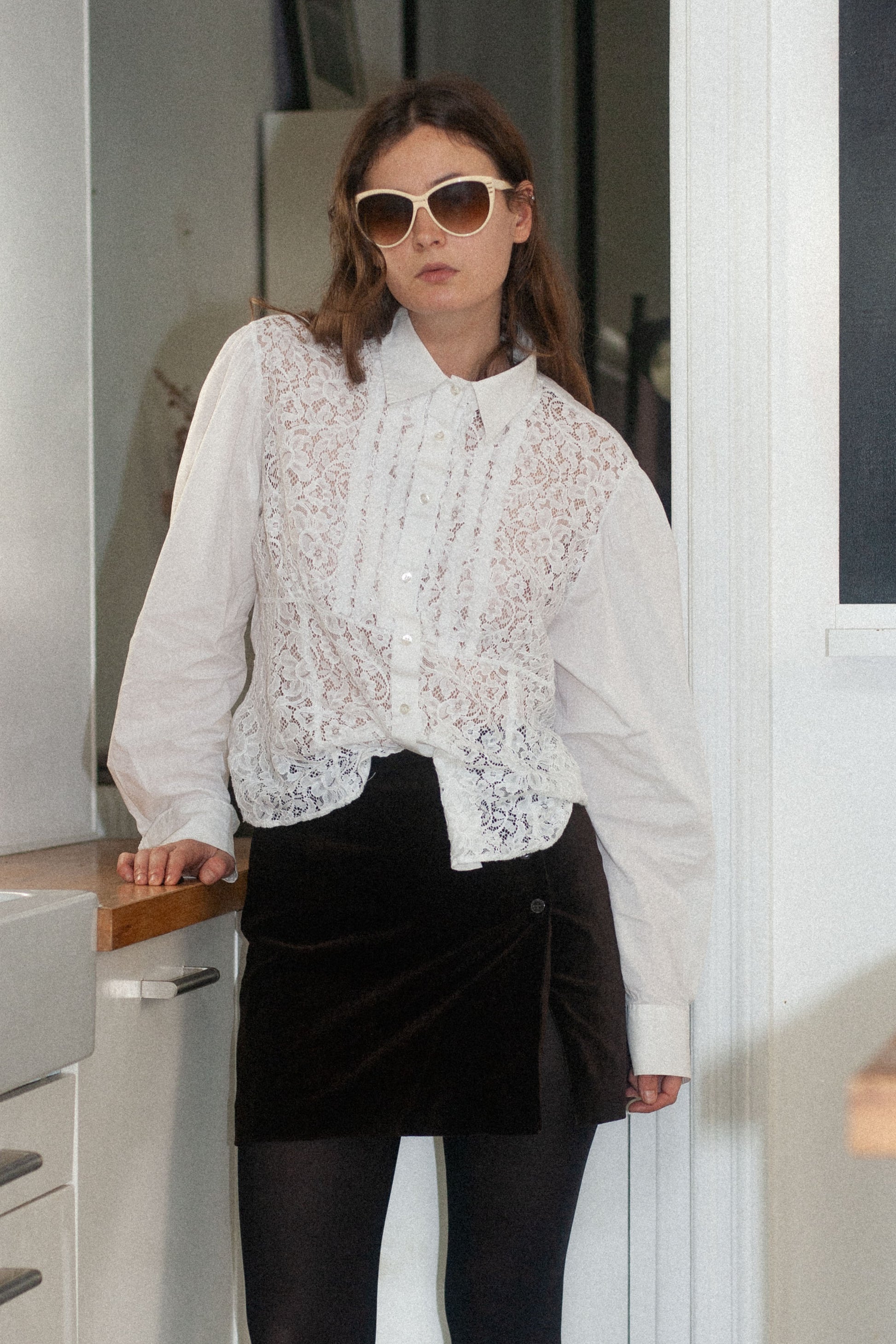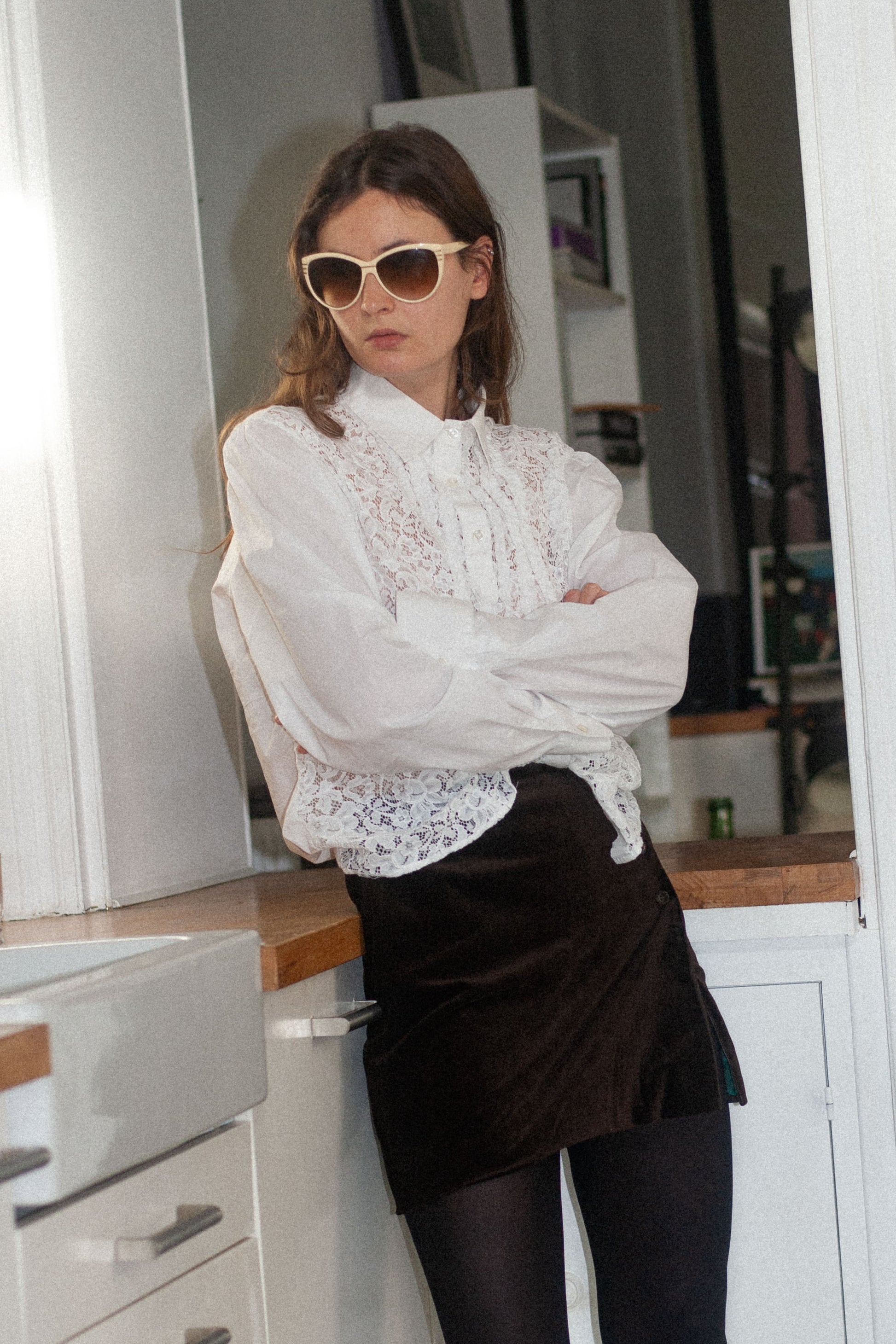 Chemisier en dentelle vintage. Made in Italy. Manches légèrement bouffantes. Taille L.