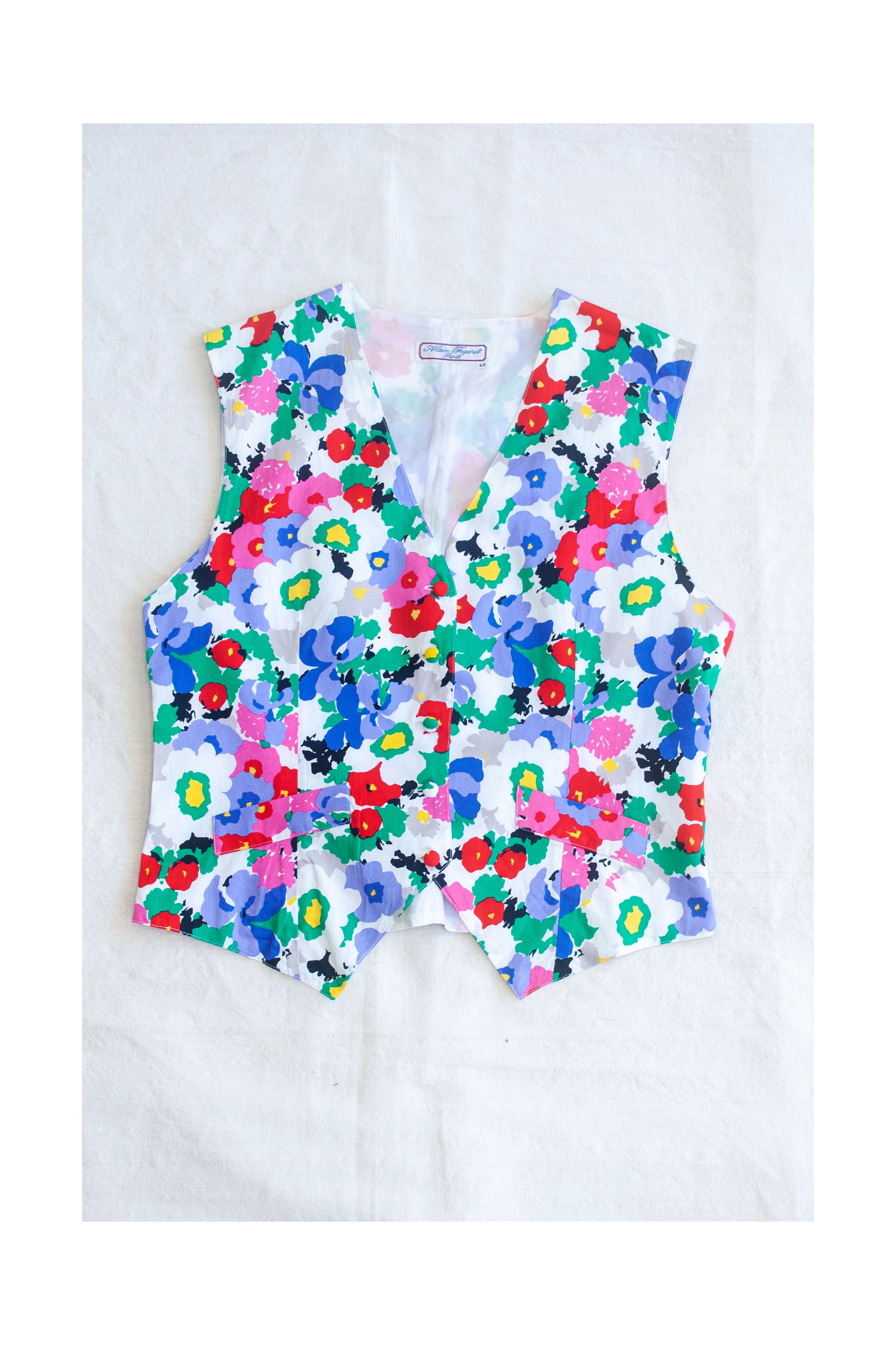 Gilet à fleurs made in France. Taille 38. Parfait état. L'imprimé coloré apportera de l'éclat à n'importe quelle tenue !