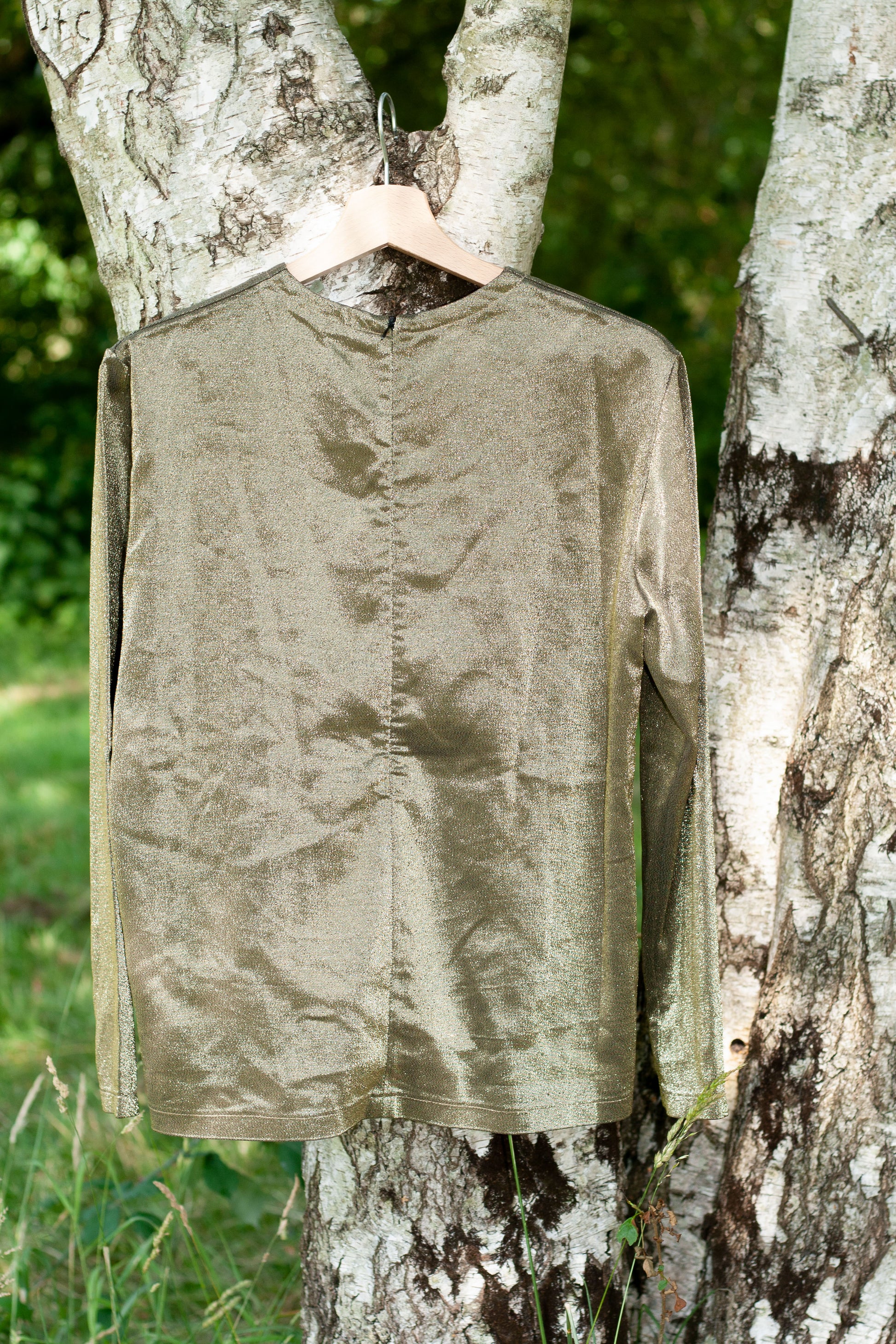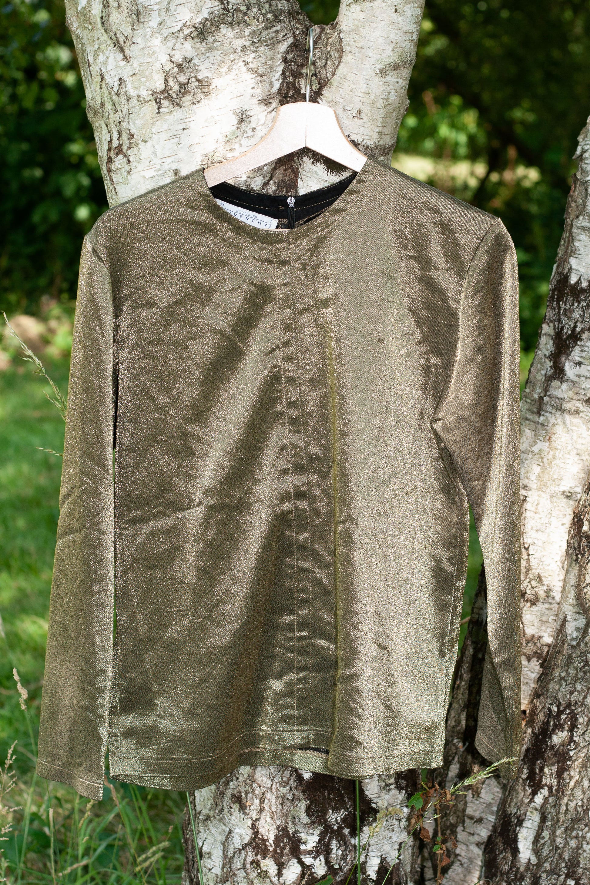 Top manches longues mordoré Givenchy Paris vintage. Era : 1980-1990. Jersey métallisé. Superbes reflets dorés. Correspond à une taille L.