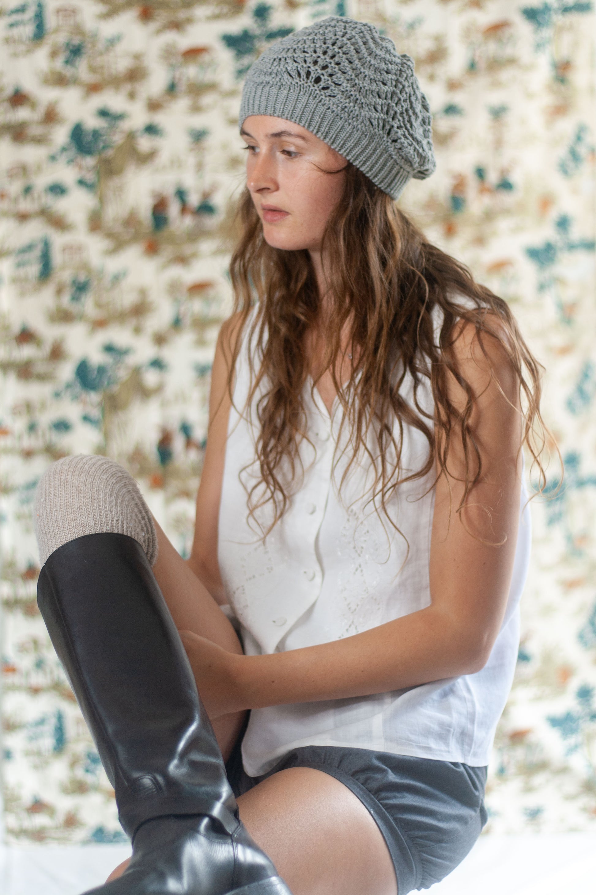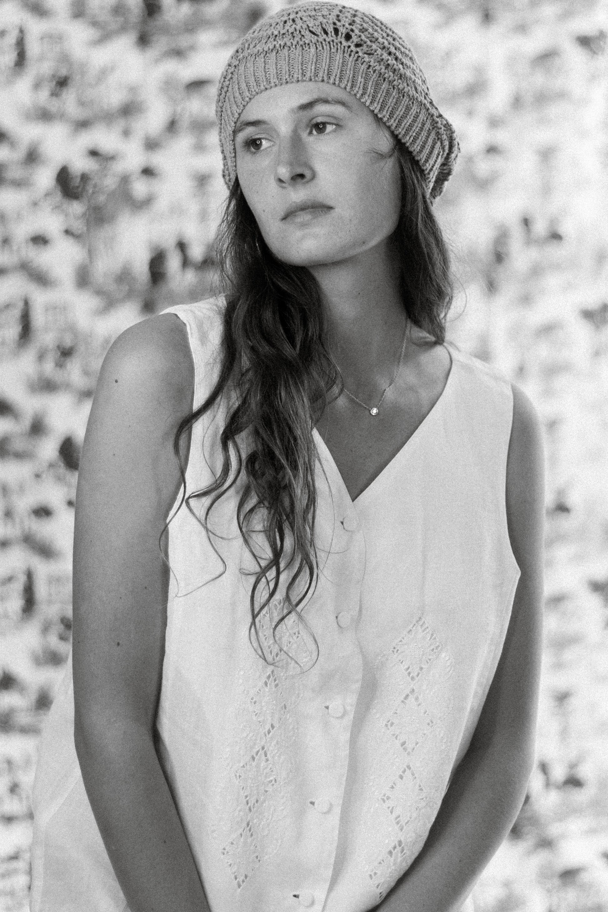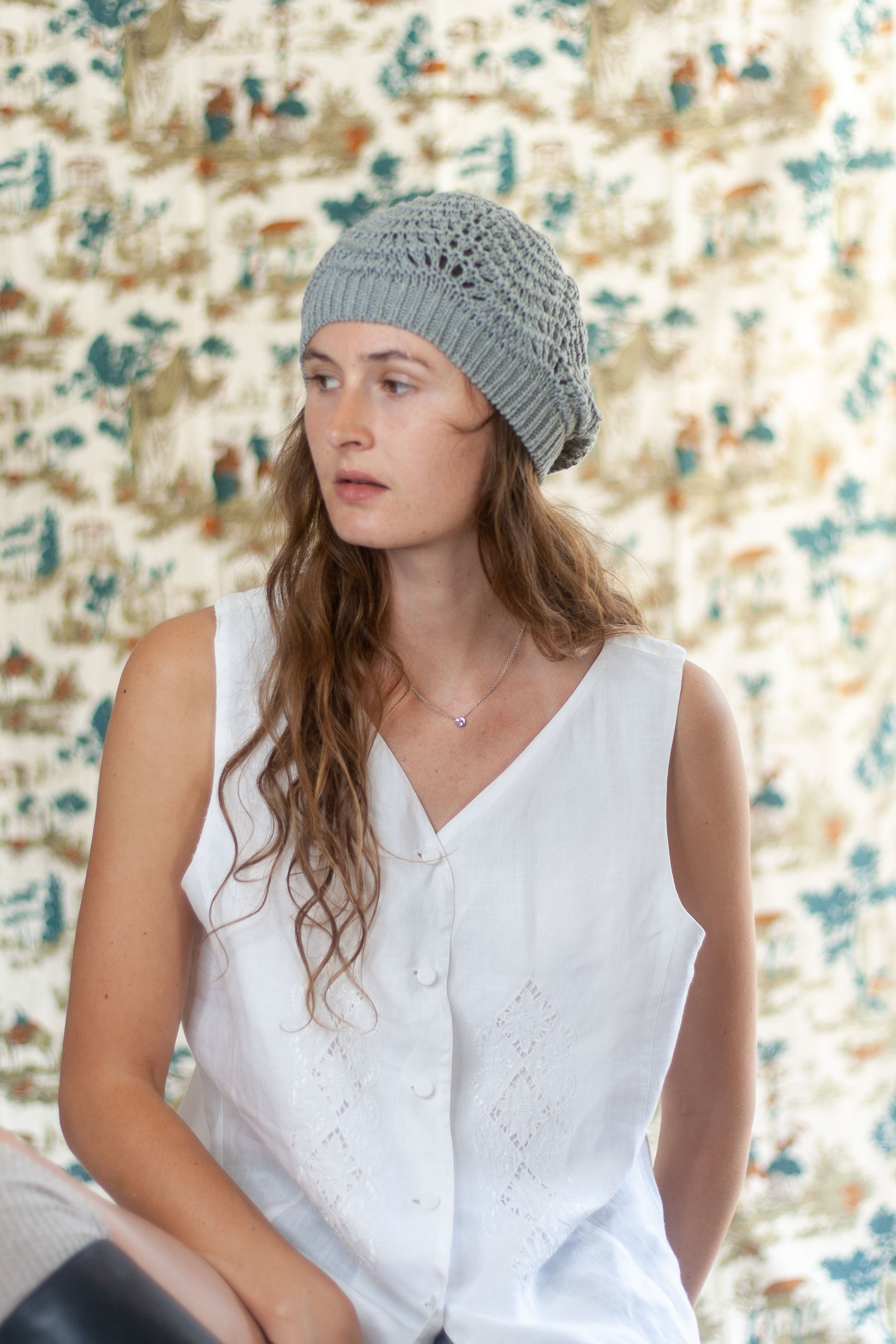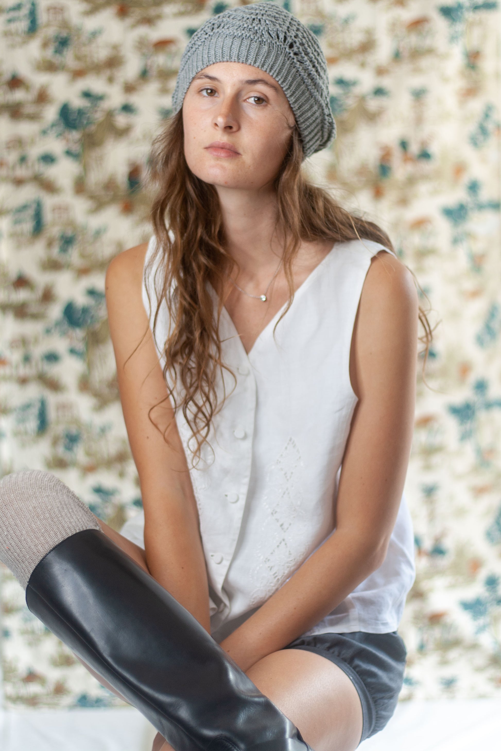 Chemisier sans manches fabriqué en Italie. Superbes broderies réalisées à la main. Boutons recouverts. 100 % lin. Taille 42-44. Peut aussi se porter oversized.