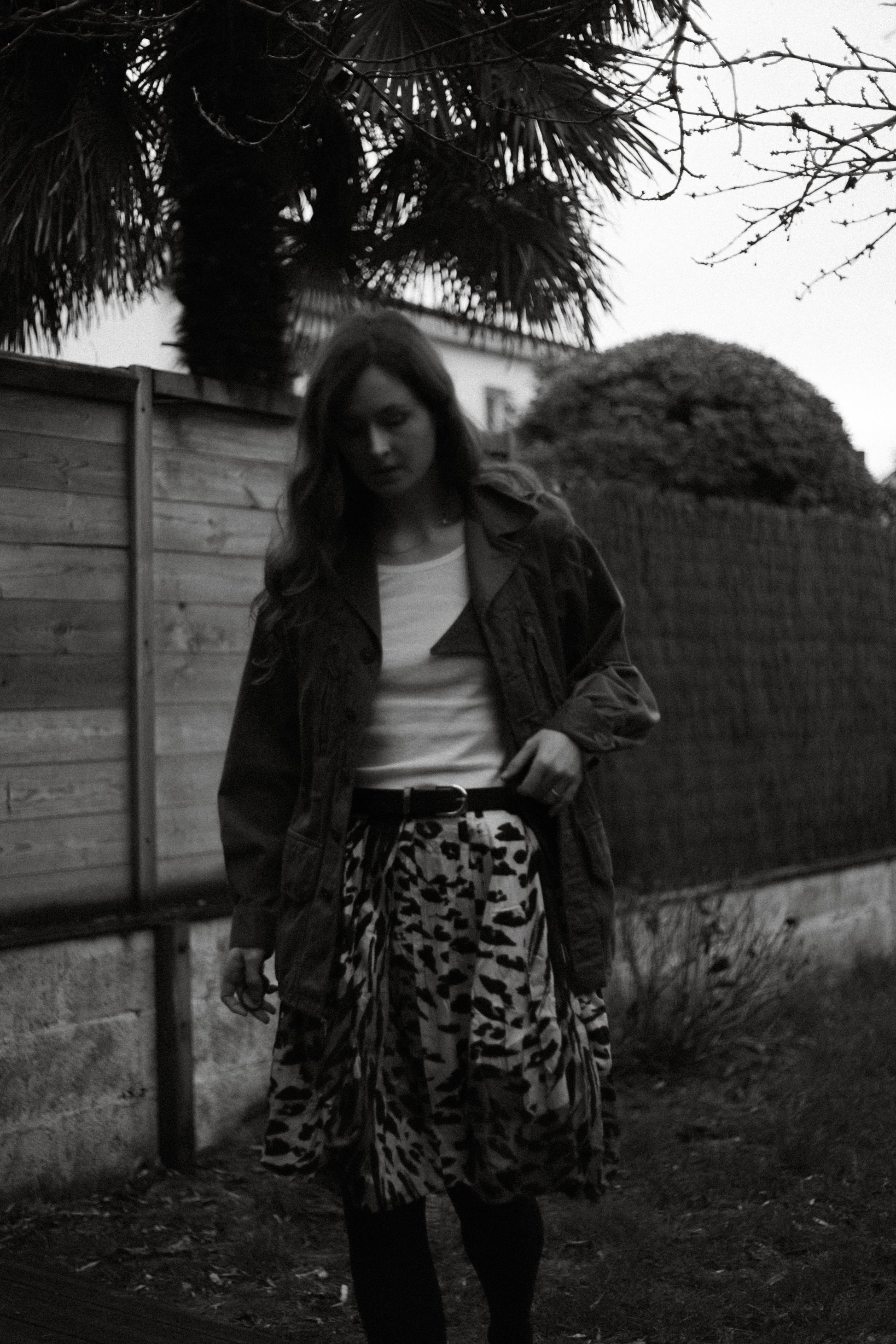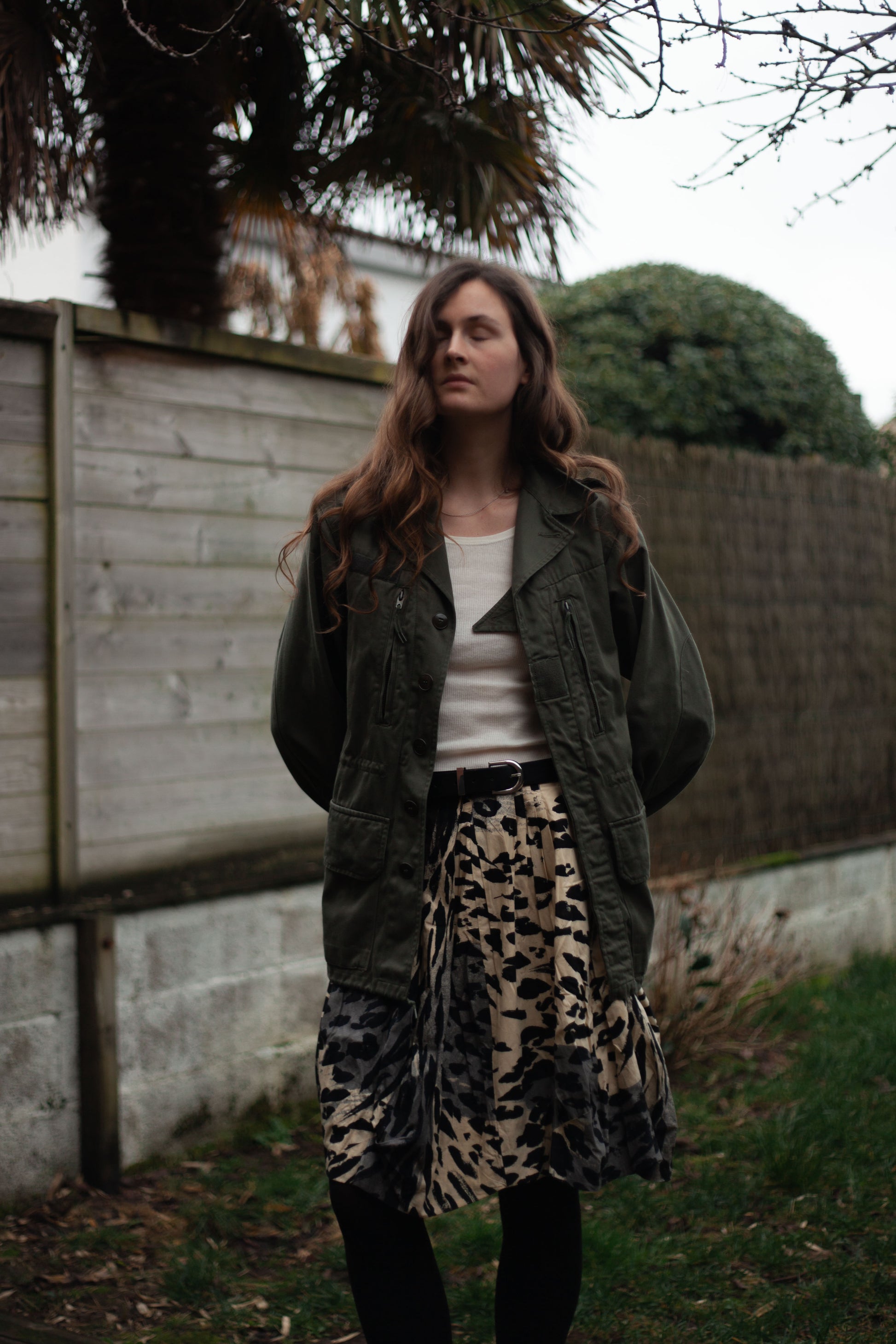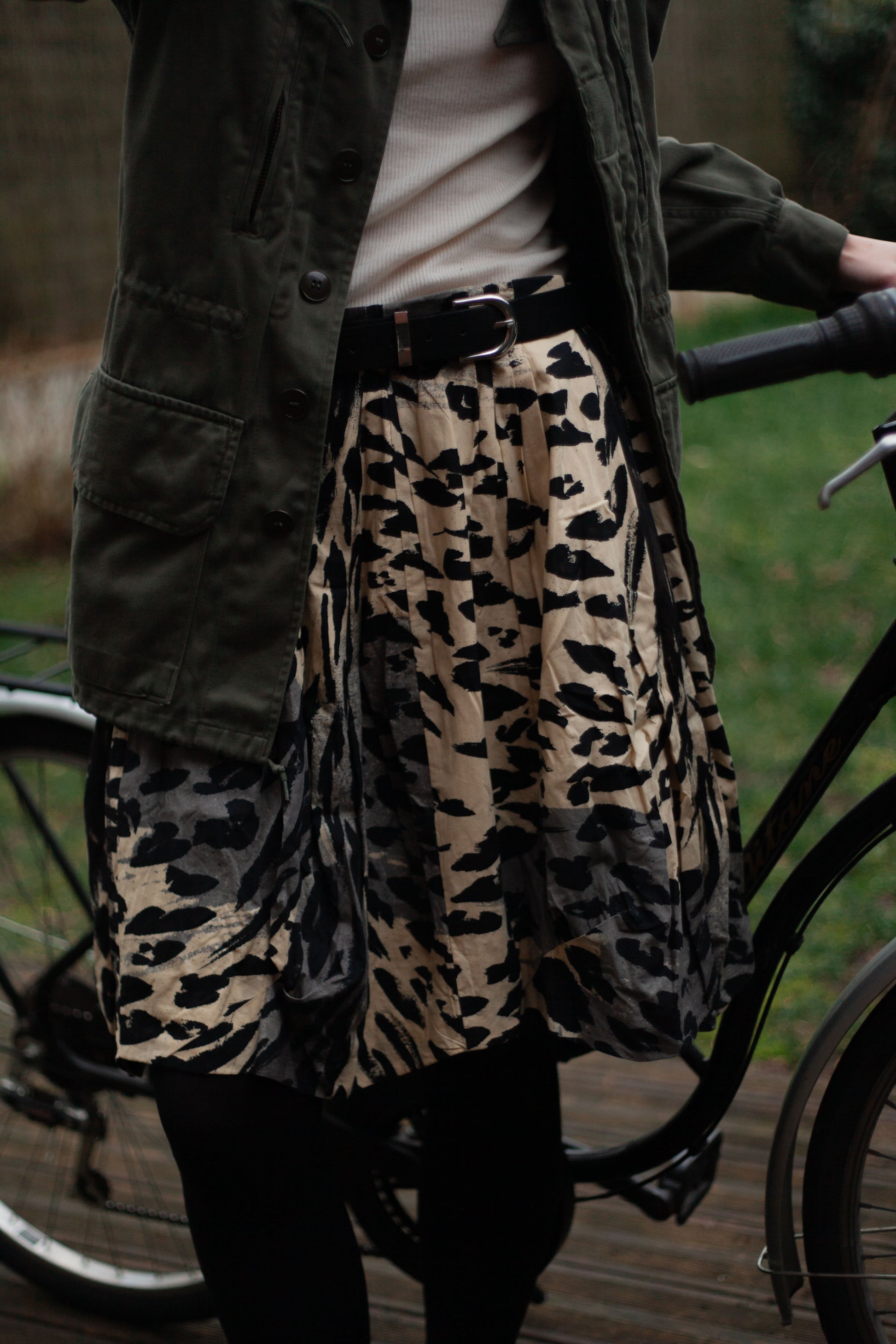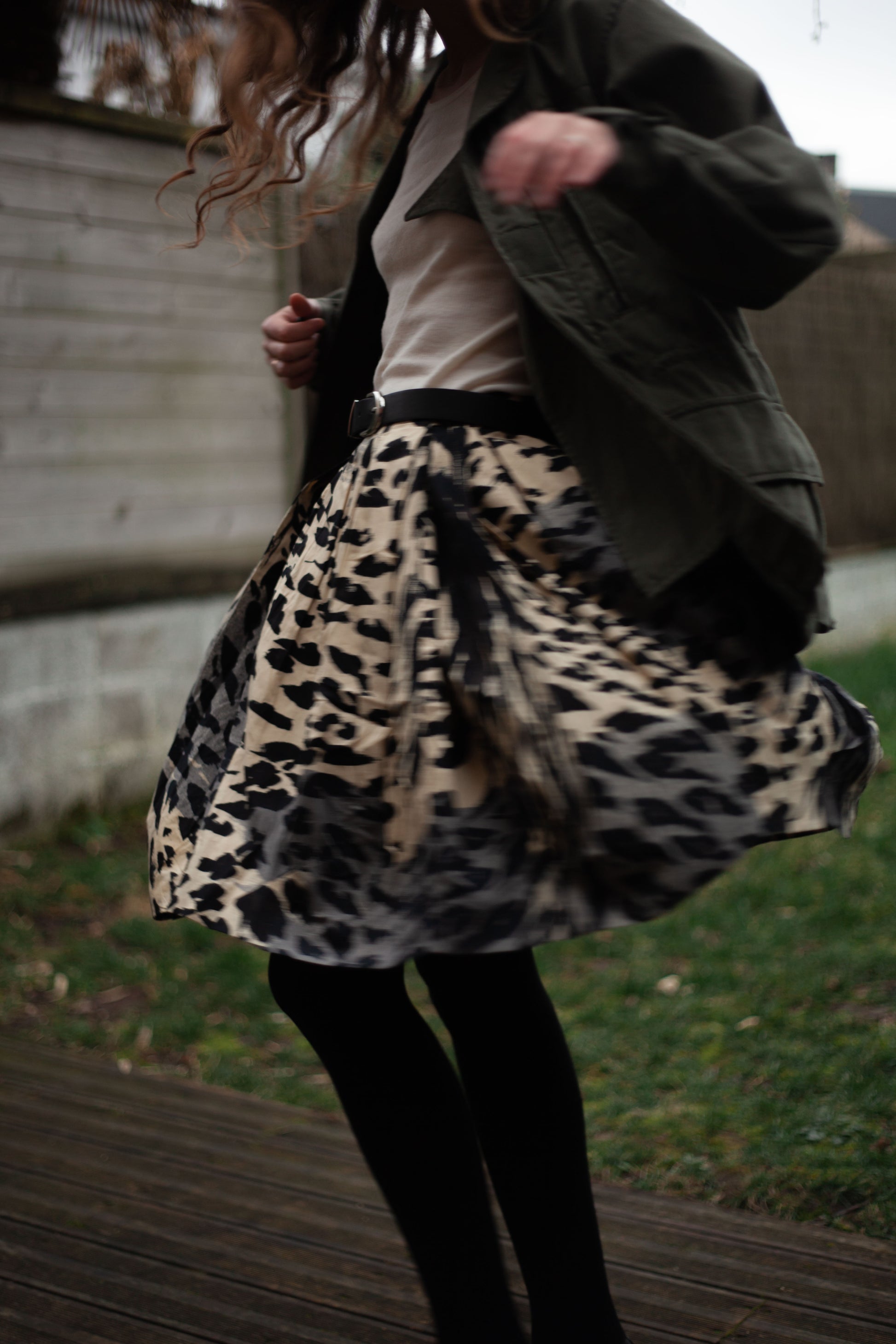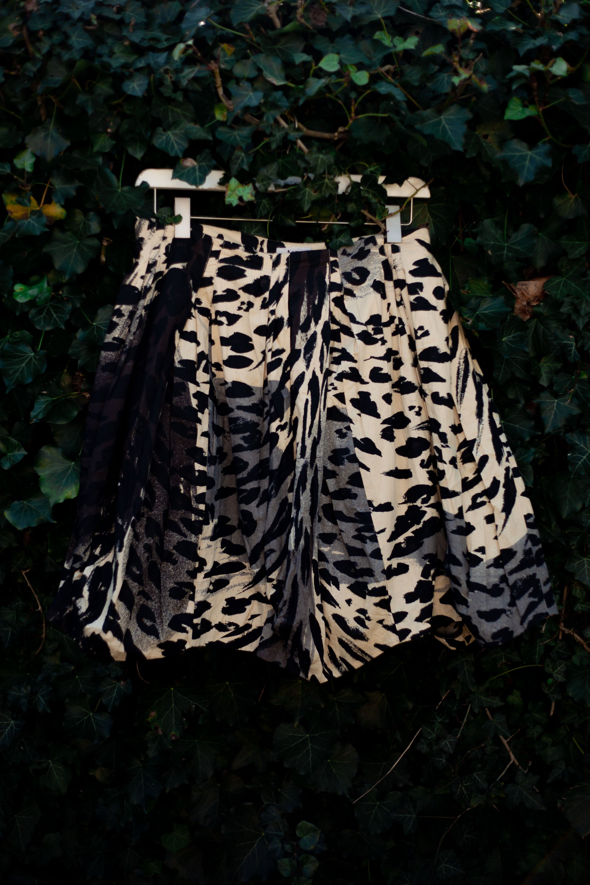 Jupon Acne Studio. Imprimé animalier léopard. Pièce forte qui rappelle les jupons aux volumes XXL d'époque. Facile à porter au quotidien. Taille L (40-42) ou XL (en l'attache sur le côté ouverte).
