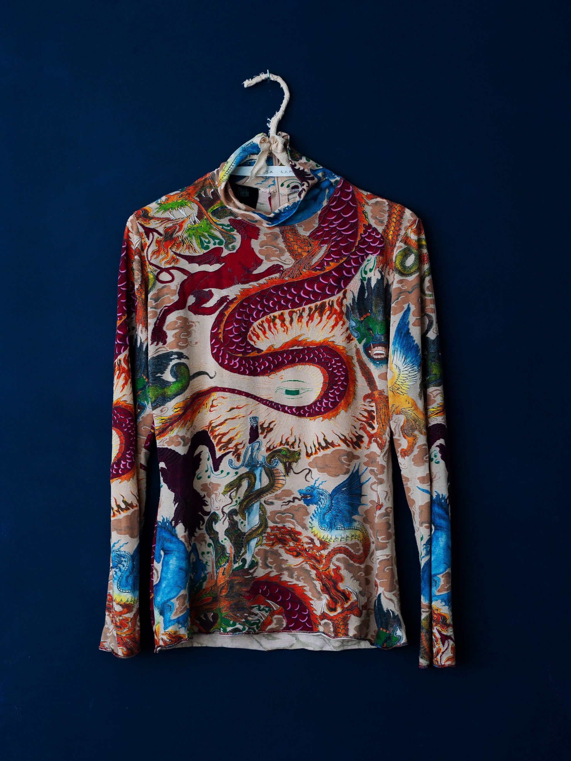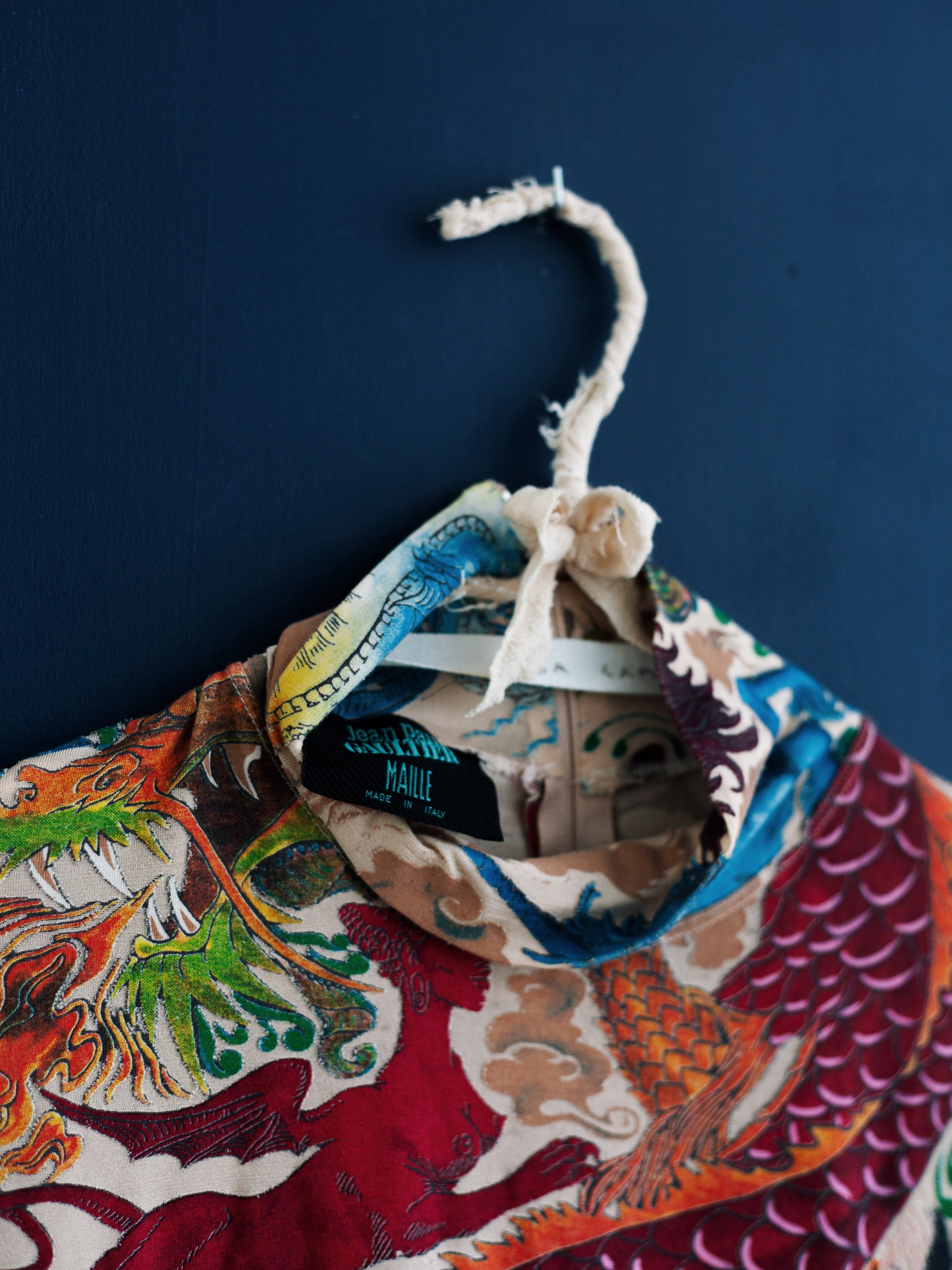 Mesh top iconique Jean Paul Gaultier. Collection tatoo (circa 1996). Taille L. Col montant.