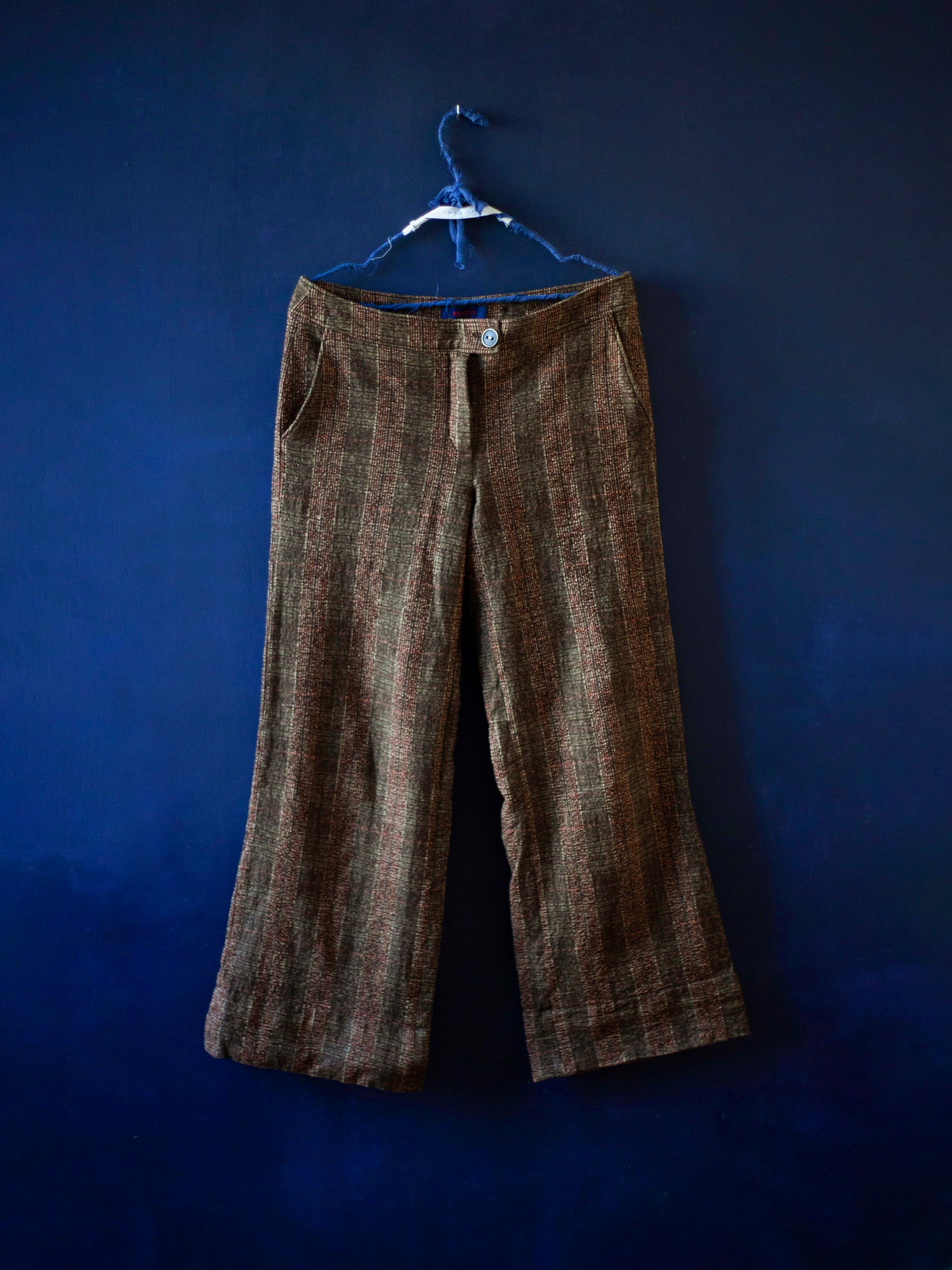 Pantalon à jambe large vintage Kenzo. Taille mi-basse. Taille indiquée : 40-42. Boutons siglés.