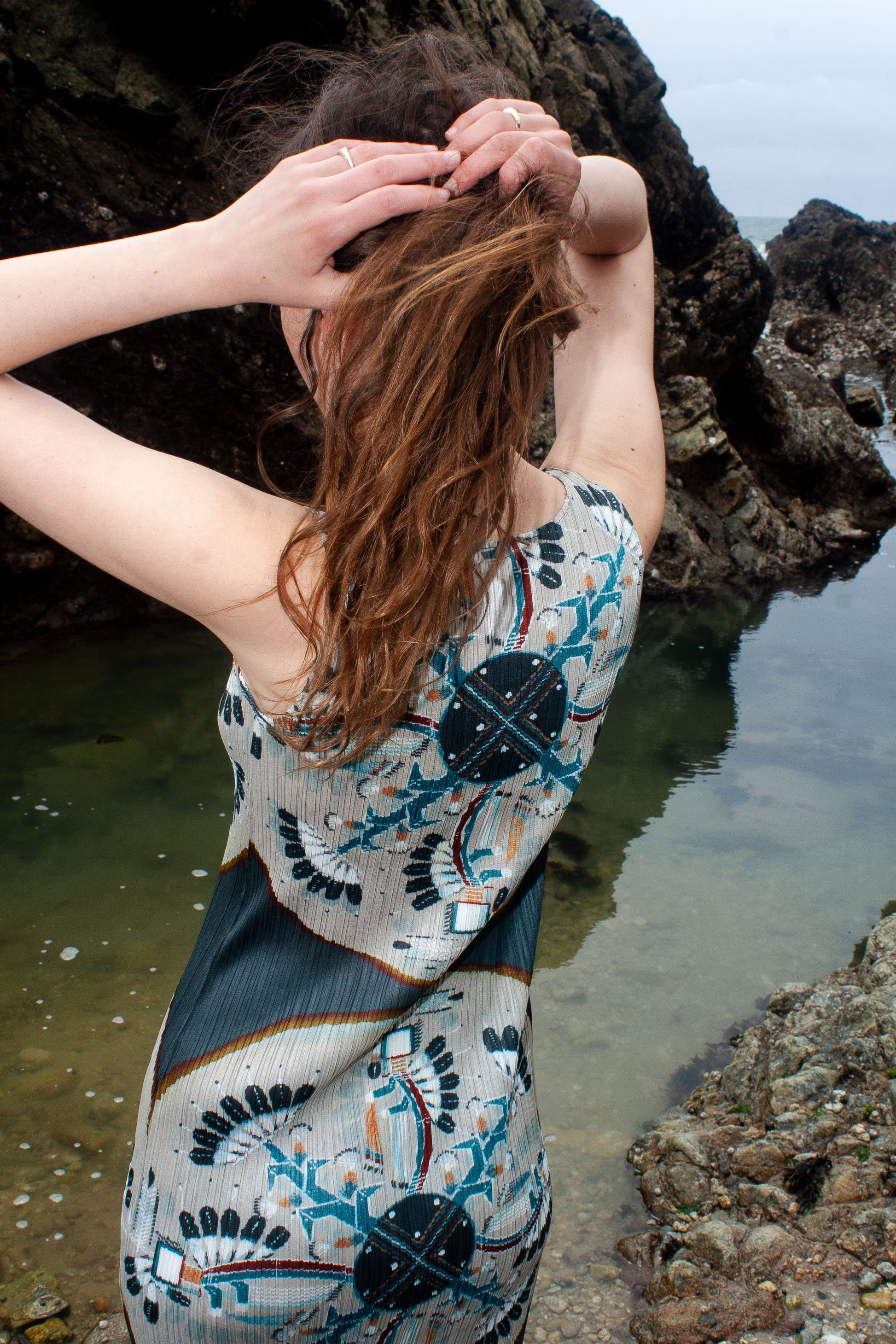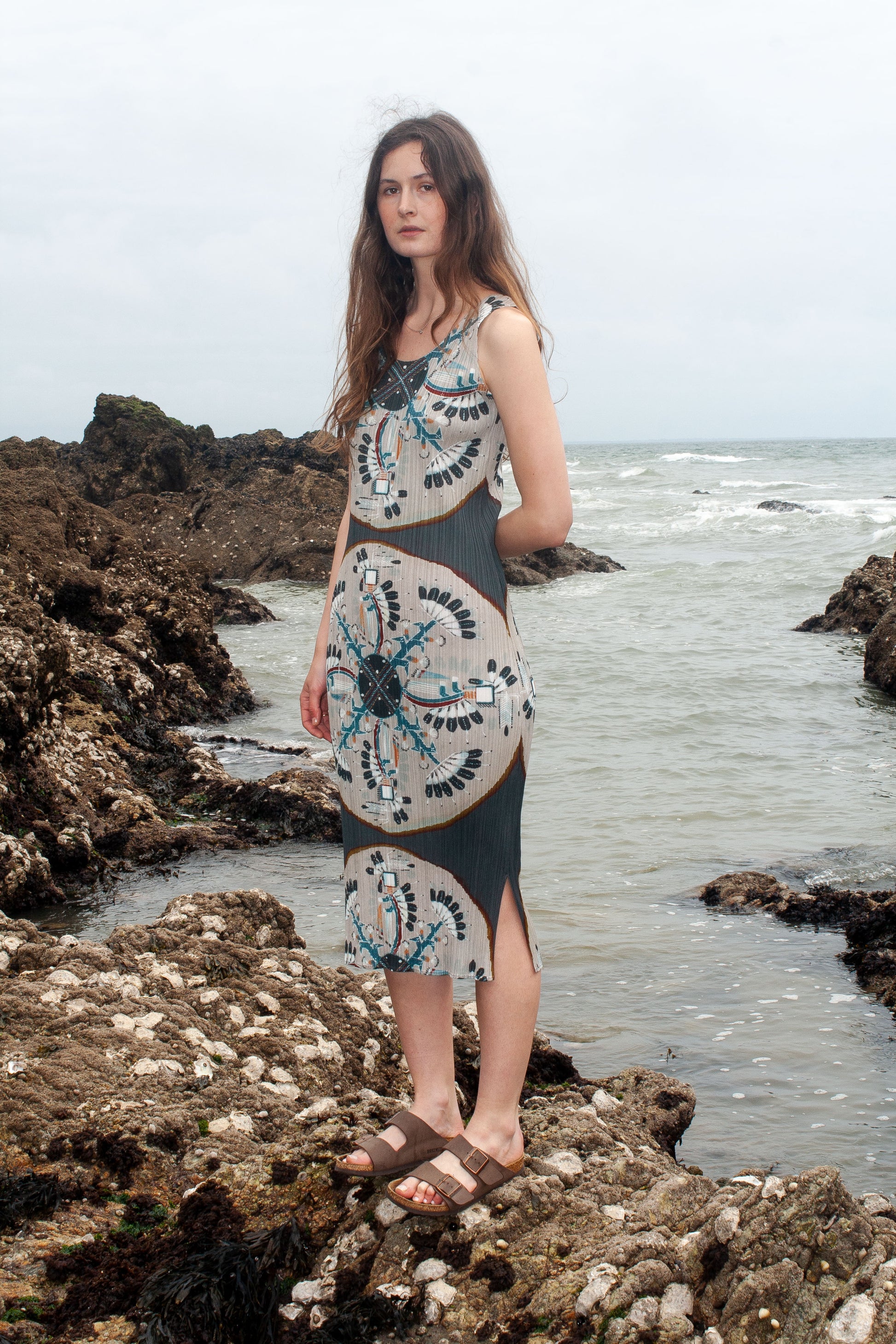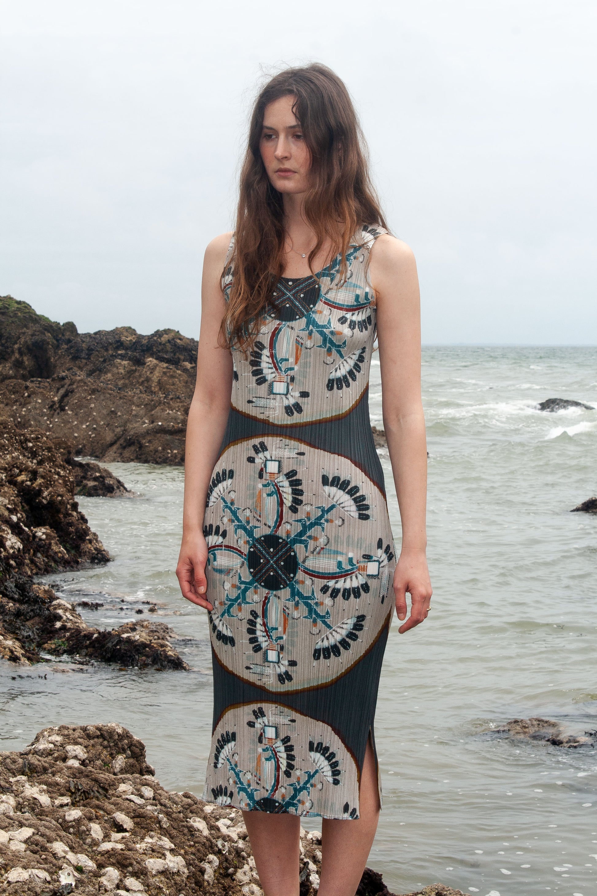 Robe midi plissée Issey Miyake taille 36-38. Collection Pleats Please. Gris légèrement bleuté. Taille 5 (correspond à la longueur). Les vêtements Pleats Please s'adaptent facilement à toutes les morphologies et tailles.
