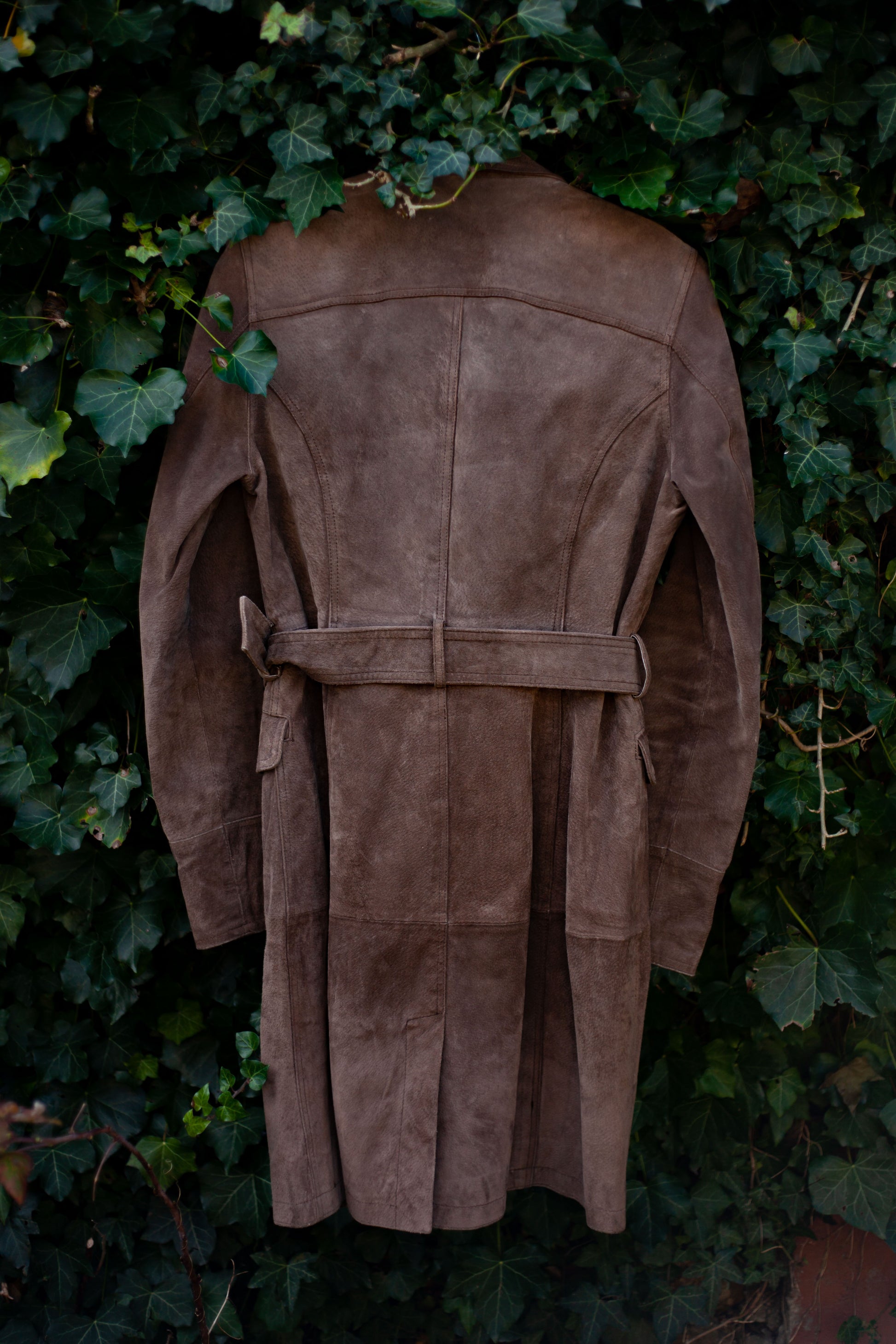 Trench 100% cuir véritable. Marque néerlandaise YAYA. Jolie patine qui lui donne un aspect vintage naturel. Taille M.