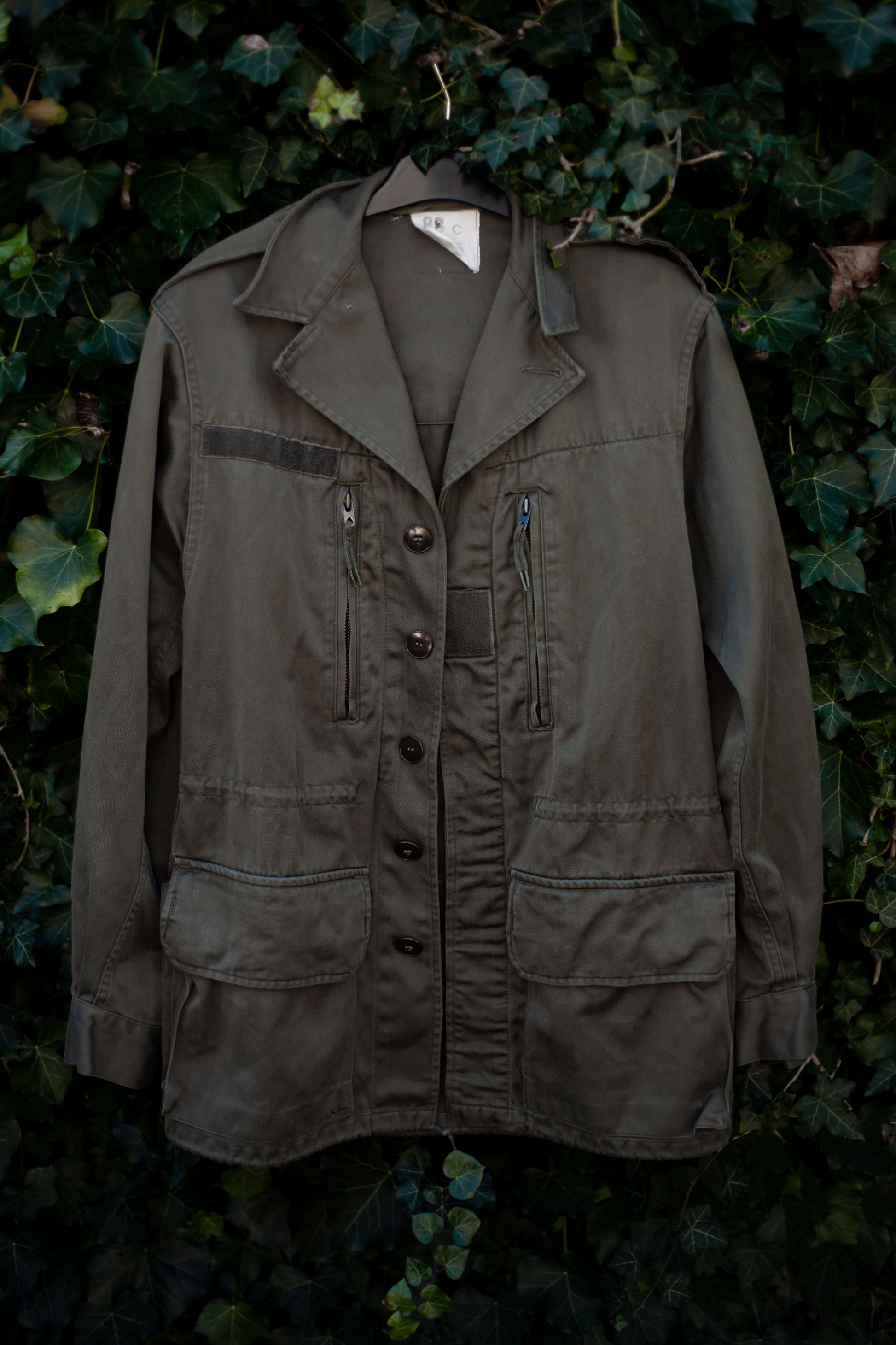 Veste militaire kaki. Taille 88C, correspond à une taille M. Pratique grâce à ses nombreuses poches, intemporelle et inusable, c'est la veste mi-saison idéale ! Se marie aussi bien avec du denim que de la soie, elle s'adapte à tous les styles et toutes les envies.