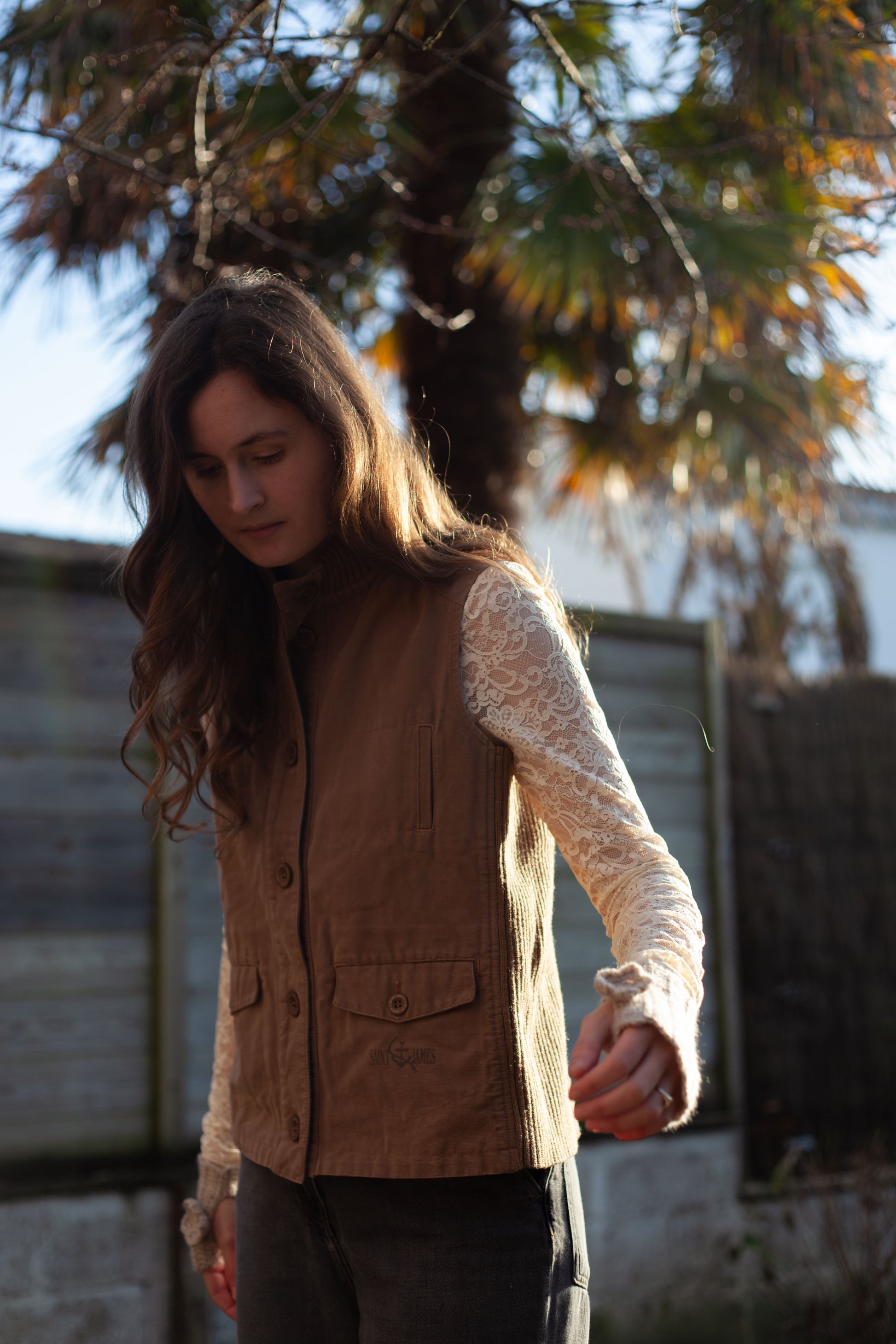 Veste de marin sans manches Saint James. Modèle vintage. Marron patiné. Taille L. Belle qualité de la toile de coton, laquelle rappelle les bleus de travail d'époque.